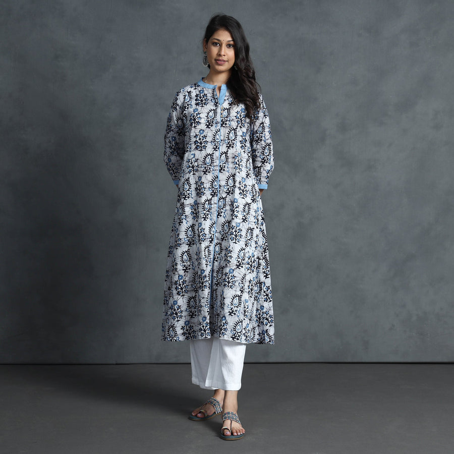 Brown - Cotton Hand Block Batik Print A-Line Kurta for women 15