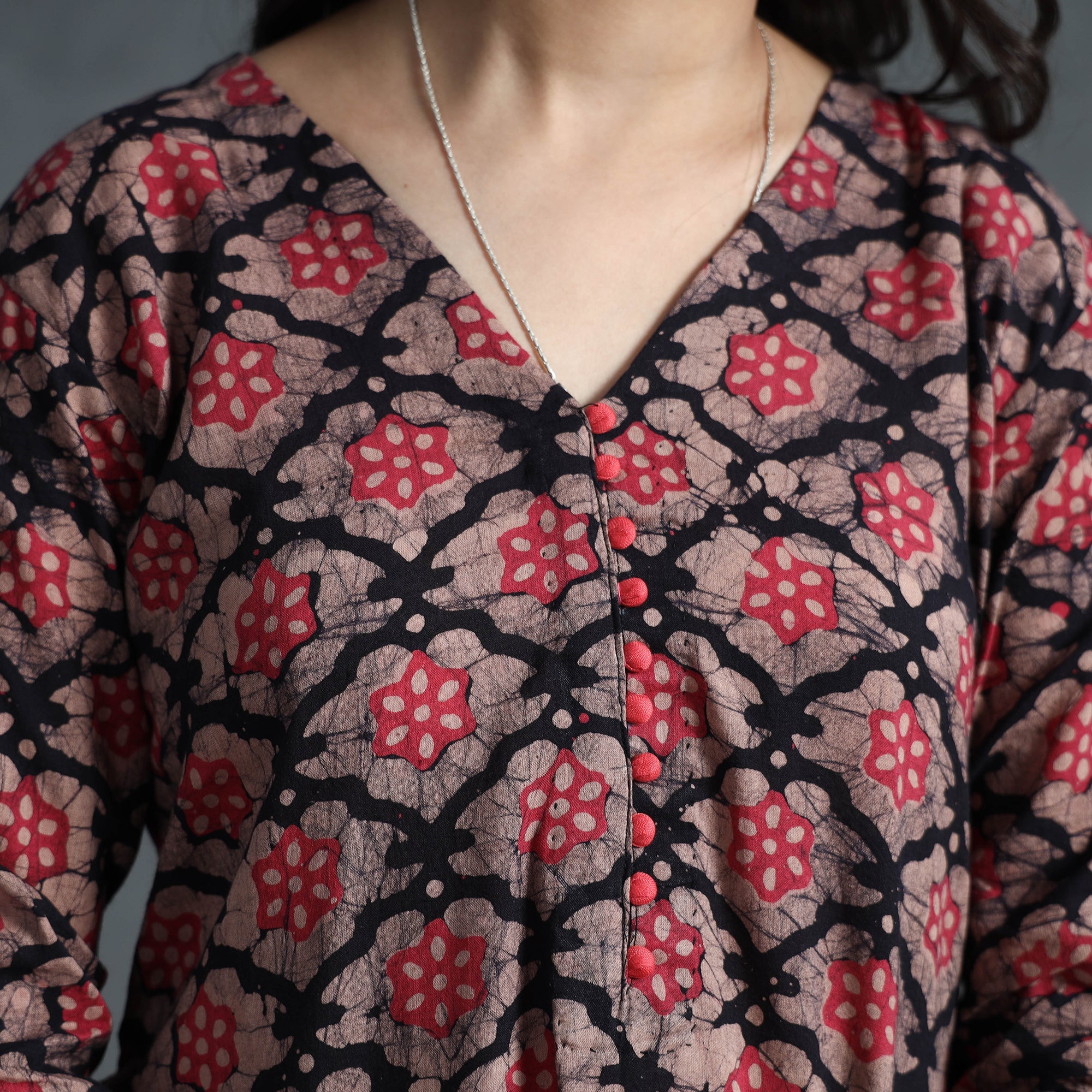 Black - Cotton Hand Block Batik Print Short Kurta for women 04