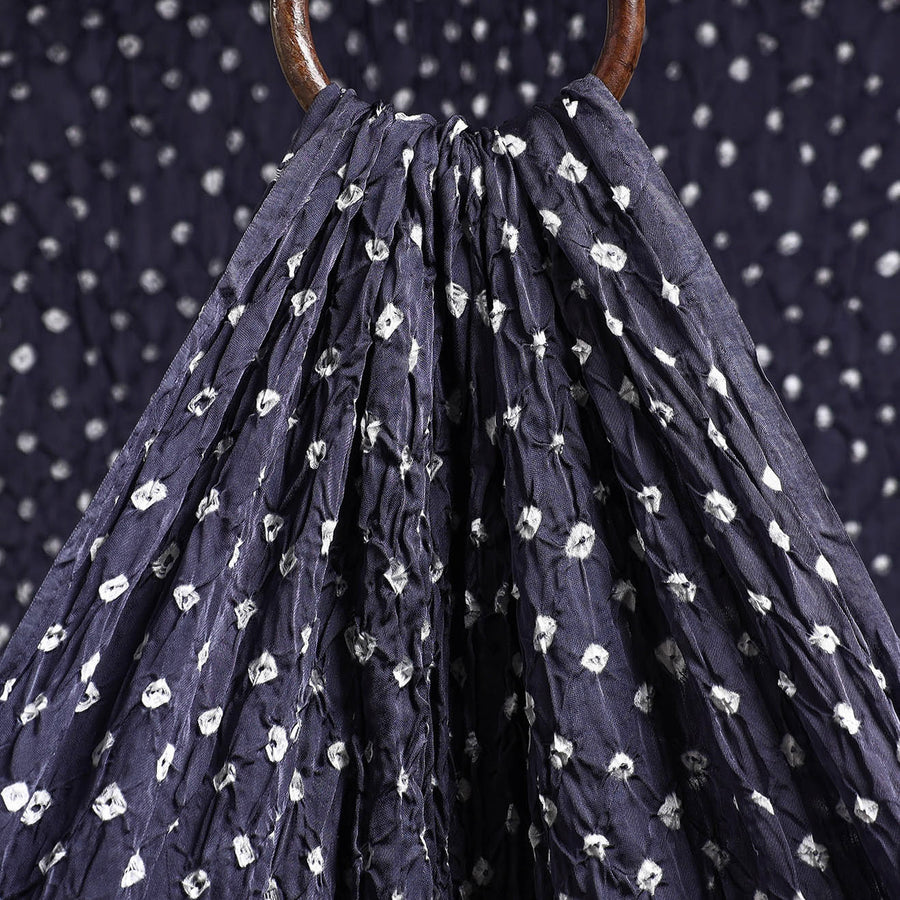 Exquisite kutch bandhani tie-dye modal silk fabric. This luxurious fabric is skillfully handcrafted by artisans using the traditional bandhani tie-dye technique in the vibrant region of Kutch, Gujarat. Modal silk is a soft, shiny and highly lustrous fabric, achieved through interlacing modal fibers and silk yarns. it has opulence of silk and the comfort of cotton modal is a fine and soft textured weave.