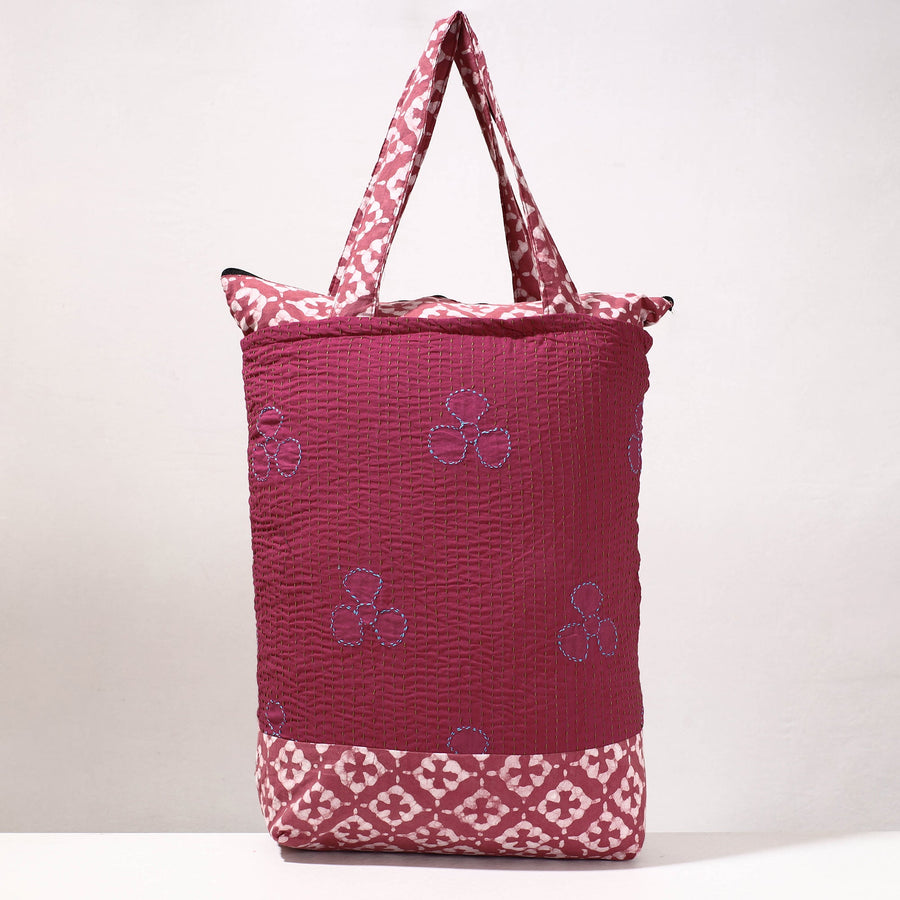 Elevate your shopping experience with our pink kantha patchwork block print cotton shopping bag. this block-printed designs add a touch of elegance and flair, making this bag a true fusion of art and utility.