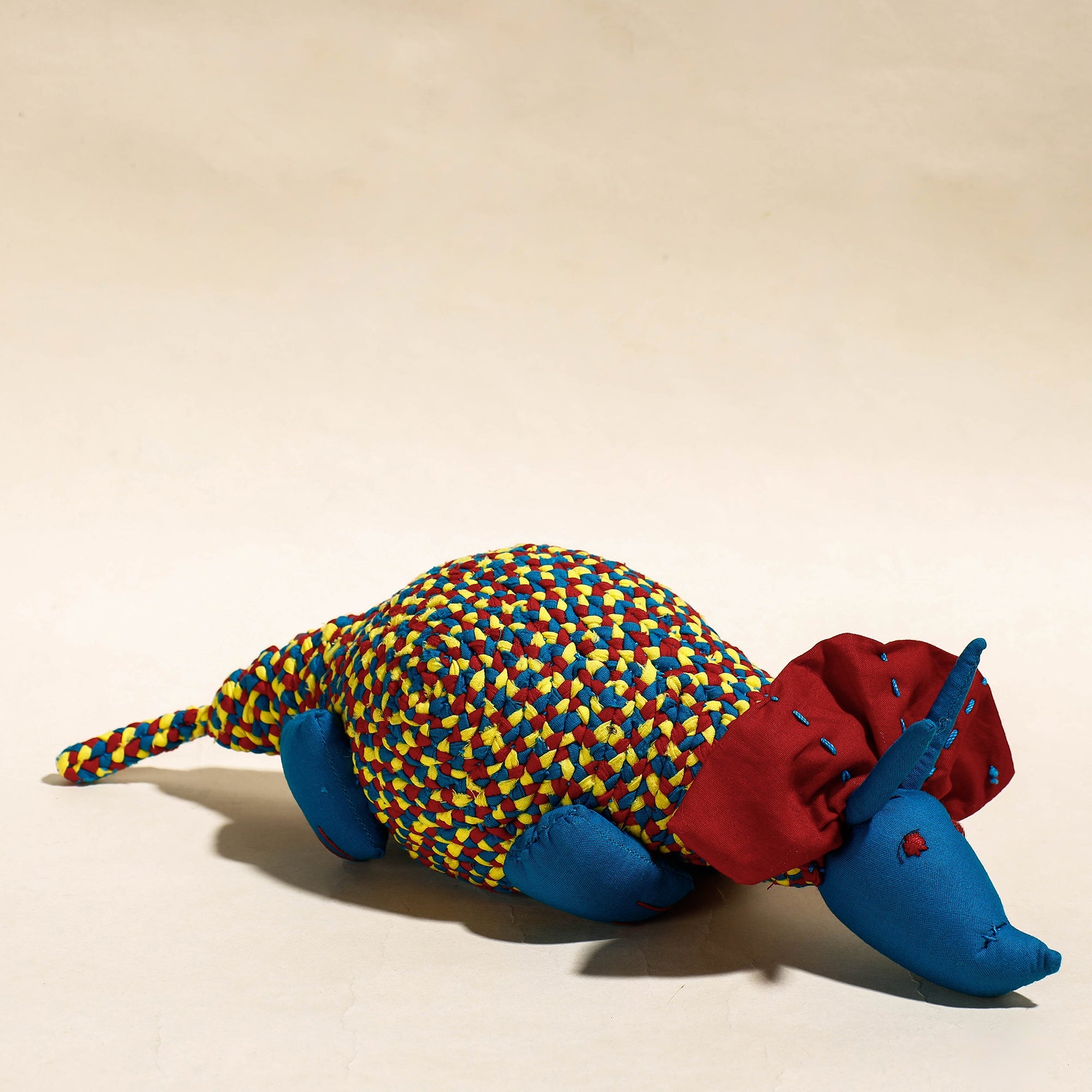 Indulge in the charm of our handmade stuffed toy, lovingly crafted from hand-braided colorful fabric and filled with soft polycotton. Created by skilled artisans of Dastkar Ranthambhore in Rajasthan, this delightful toy embodies both creativity and sustainability.