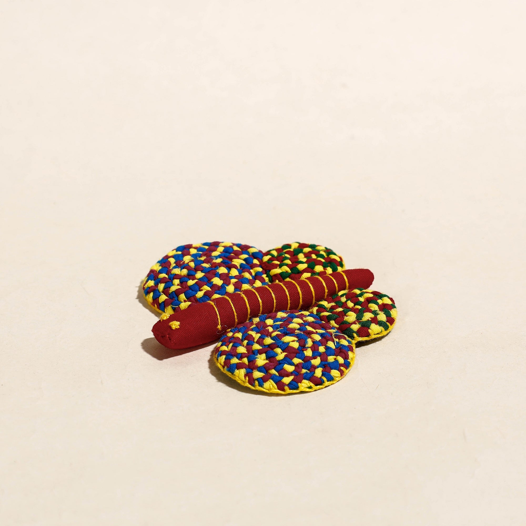 Indulge in the charm of our handmade stuffed toy, lovingly crafted from hand-braided colorful fabric and filled with soft polycotton. Created by skilled artisans of Dastkar Ranthambhore in Rajasthan, this delightful toy embodies both creativity and sustainability.