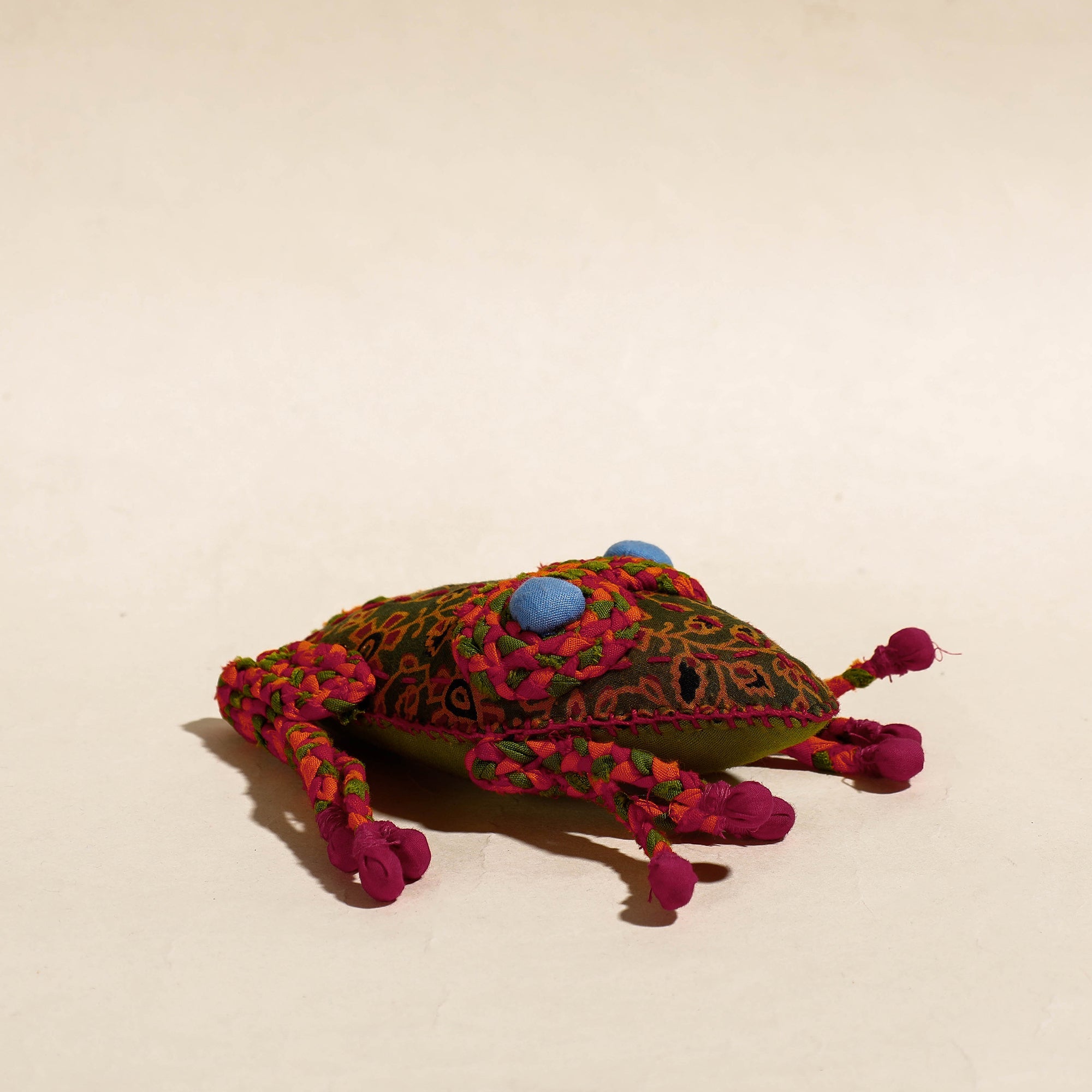 Indulge in the charm of our handmade stuffed toy, lovingly crafted from hand-braided colorful fabric and filled with soft polycotton. Created by skilled artisans of Dastkar Ranthambhore in Rajasthan, this delightful toy embodies both creativity and sustainability.