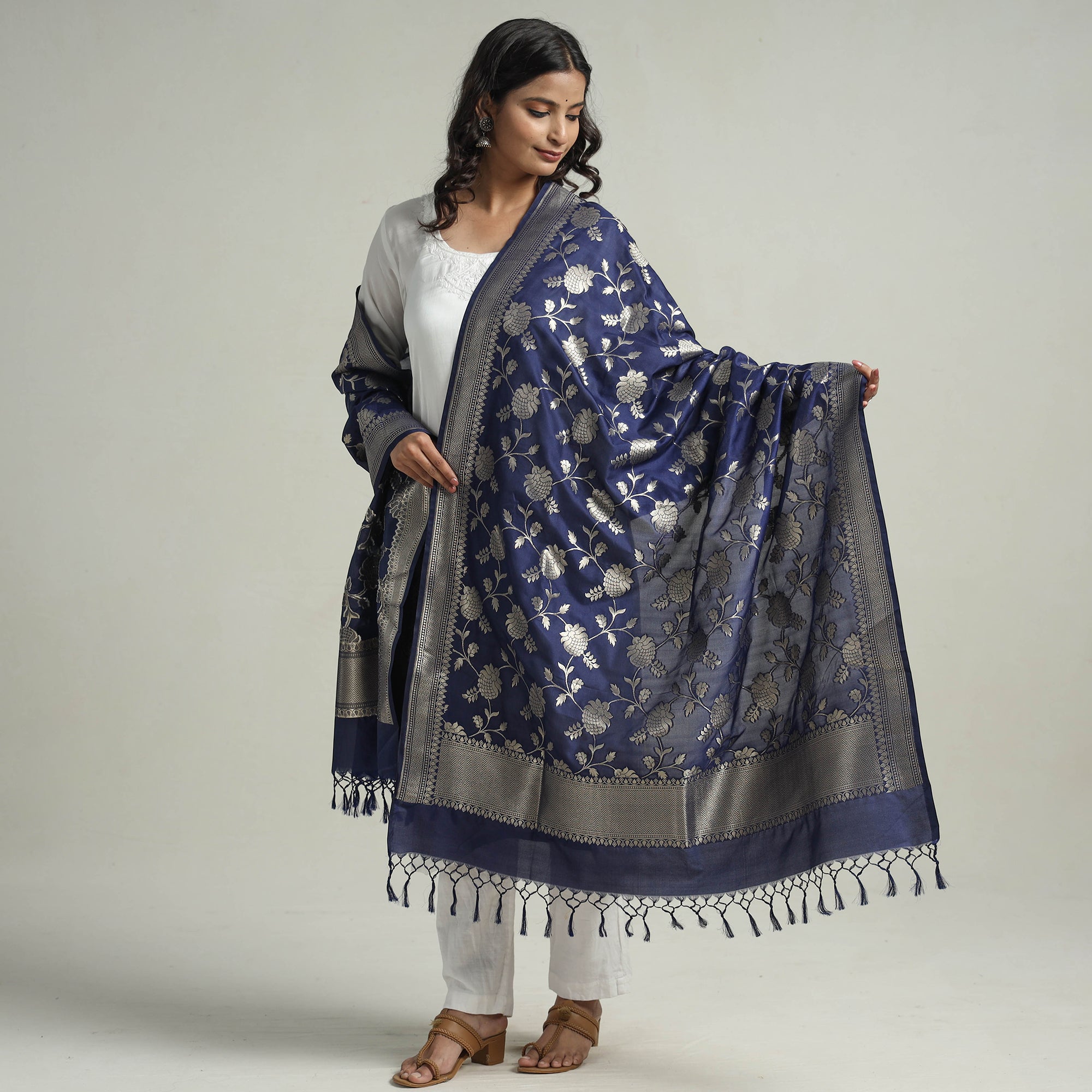 • Blue - Banarasi Semi Silk Zari Jaal Dupatta with Tassels 09