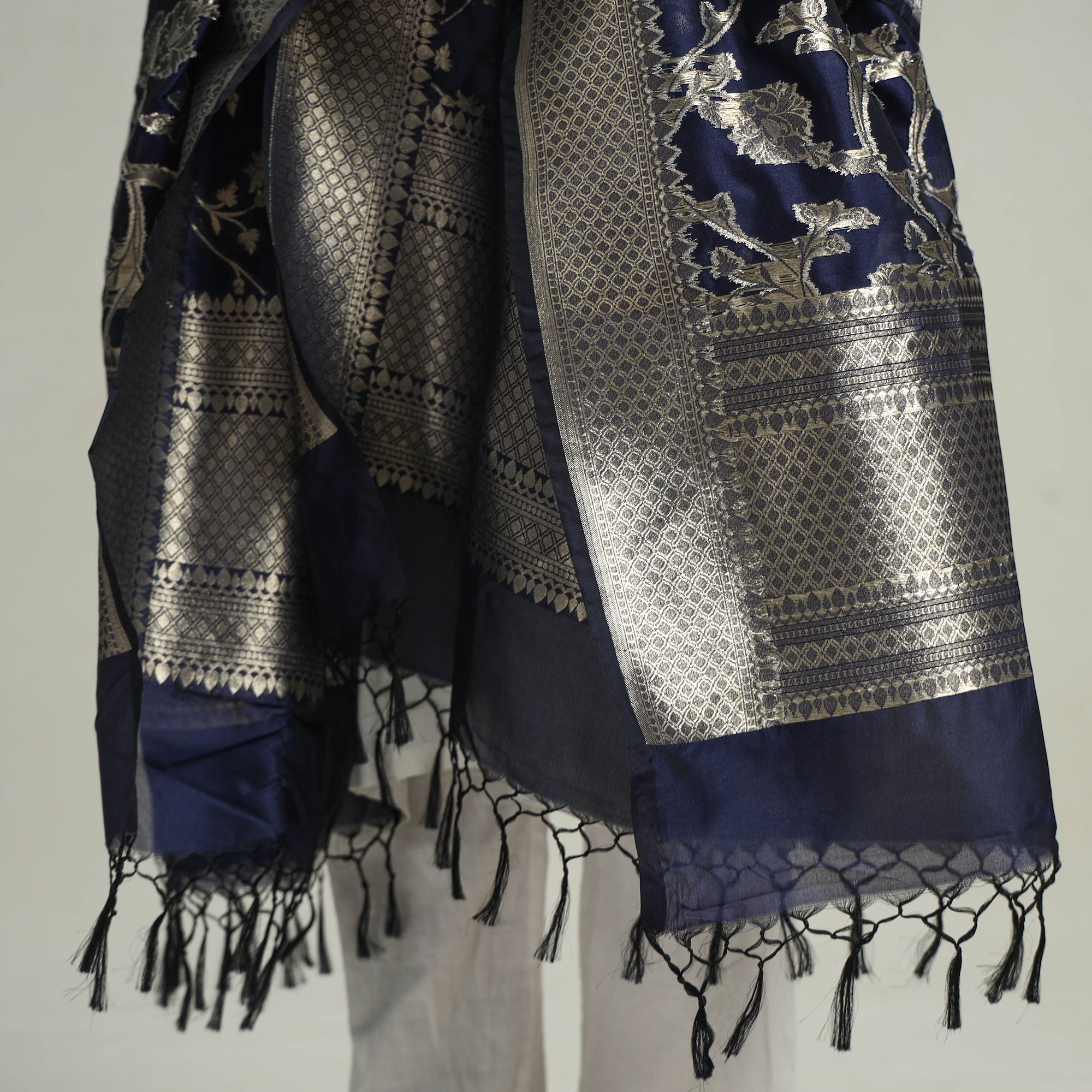 • Blue - banarasi semi silk zari jaal dupatta with tassels 26