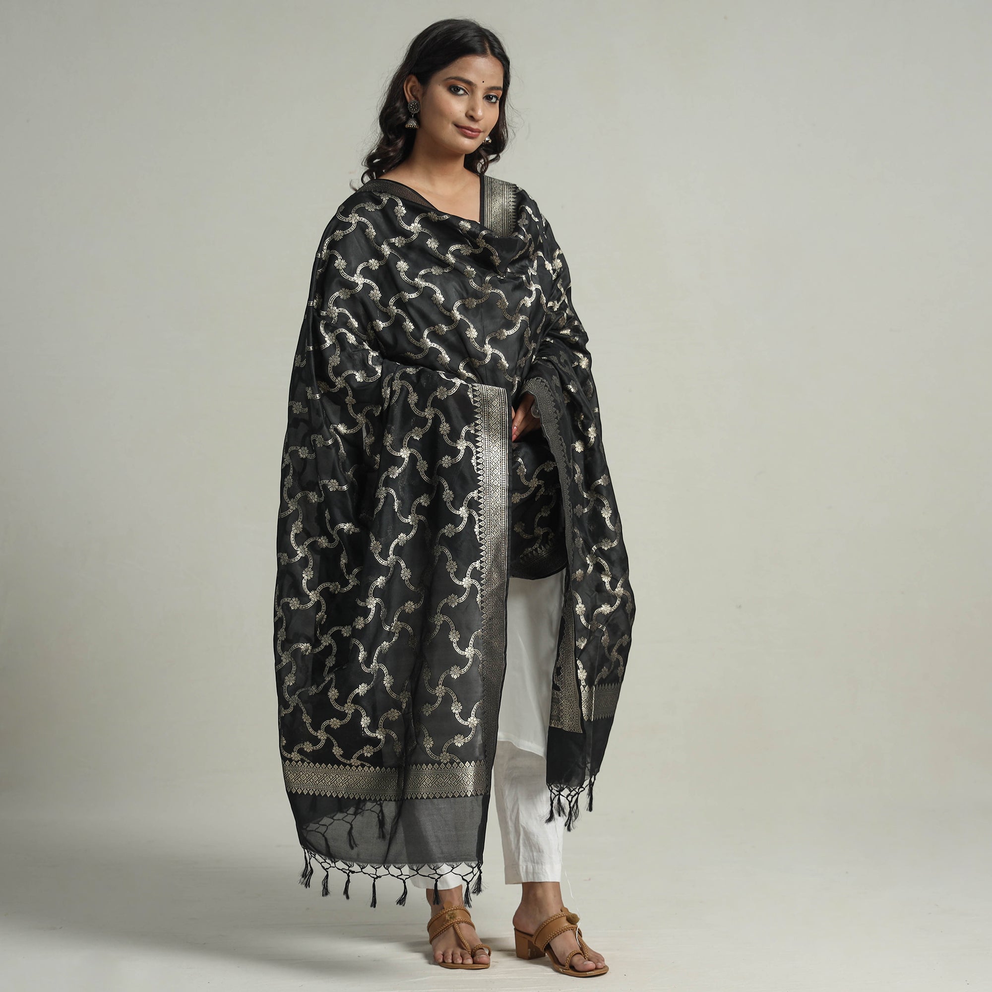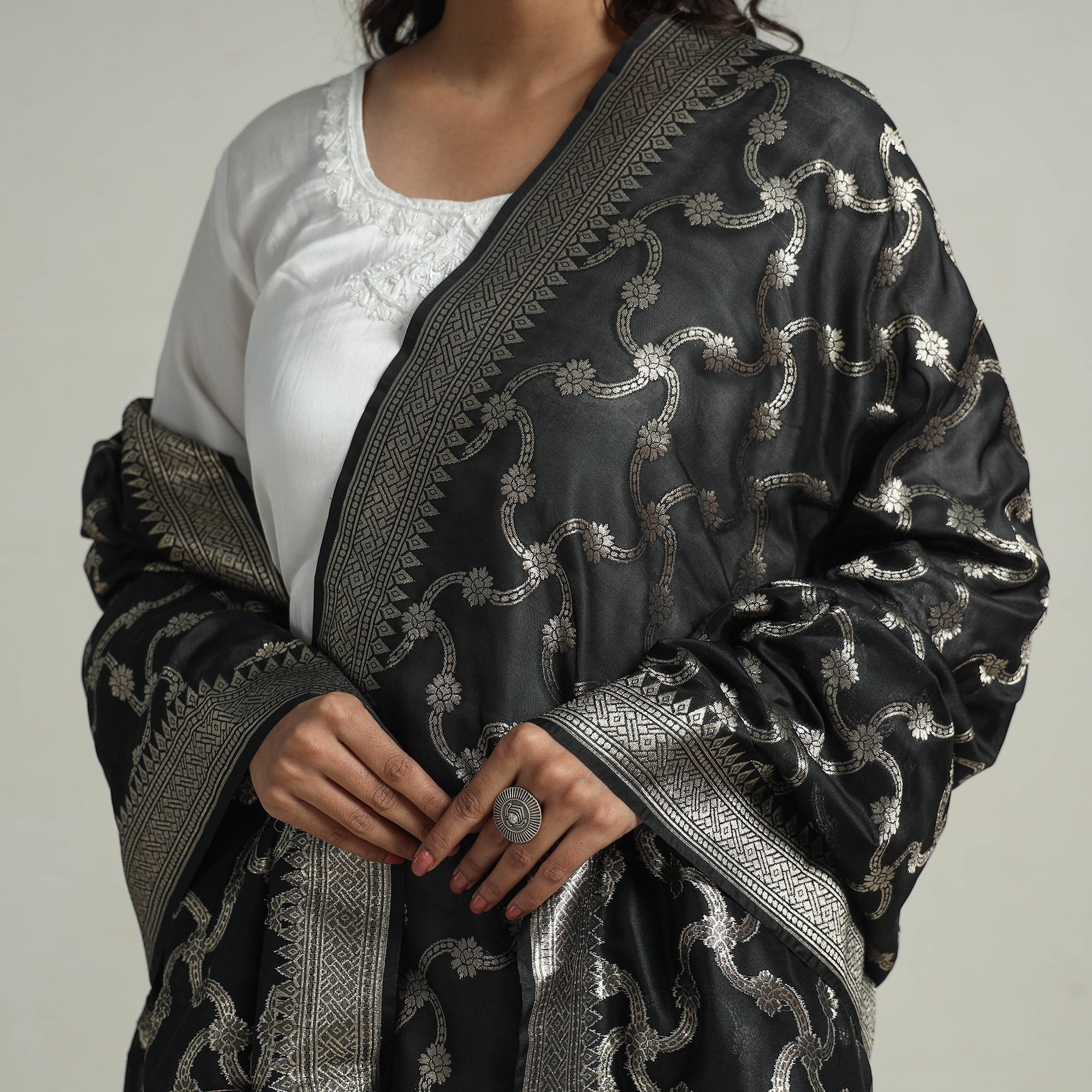 • Black - Semi Silk Zari Jaal Banarasi Dupatta 32