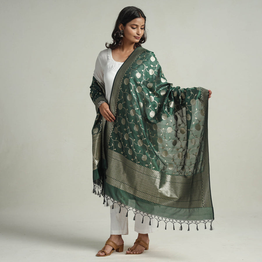 Green - Semi Silk Zari Jaal Banarasi Dupatta 45