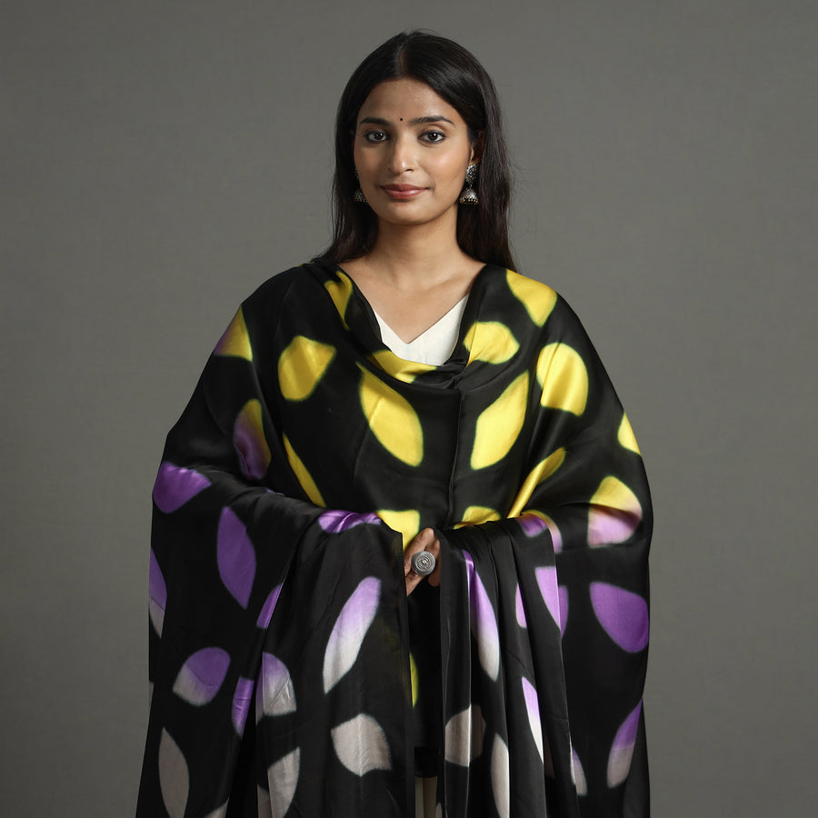 Elevate your style with this exquisite clamp-dyed shibori modal silk dupatta made using the clamp dyeing technique practised by the artisans of Kutch. Crafted with a luxurious blend of modal silk, it features a stunning zari border for an elegant touch. The unique clamp dyeing technique adds a beautiful and distinctive pattern, making it the perfect accessory to enhance any outfit.