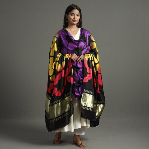 Elevate your style with this exquisite clamp-dyed shibori modal silk dupatta made using the clamp dyeing technique practised by the artisans of Kutch. Crafted with a luxurious blend of modal silk, it features a stunning zari border for an elegant touch. The unique clamp dyeing technique adds a beautiful and distinctive pattern, making it the perfect accessory to enhance any outfit.