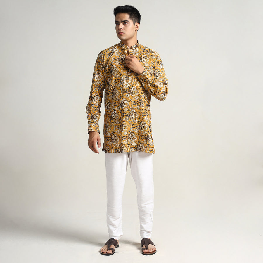 Bagru block printed cotton men's short kurta with one chest pocket, makes you comfortable with ease all day long. It's made from cotton fabric and features full sleeves, a front button placket. This casual kurta is perfect for your daily outing and for a special occasion. Made using natural dyes through traditional mud resist process by using hand carved wooden block practiced in Bagru, Rajasthan.