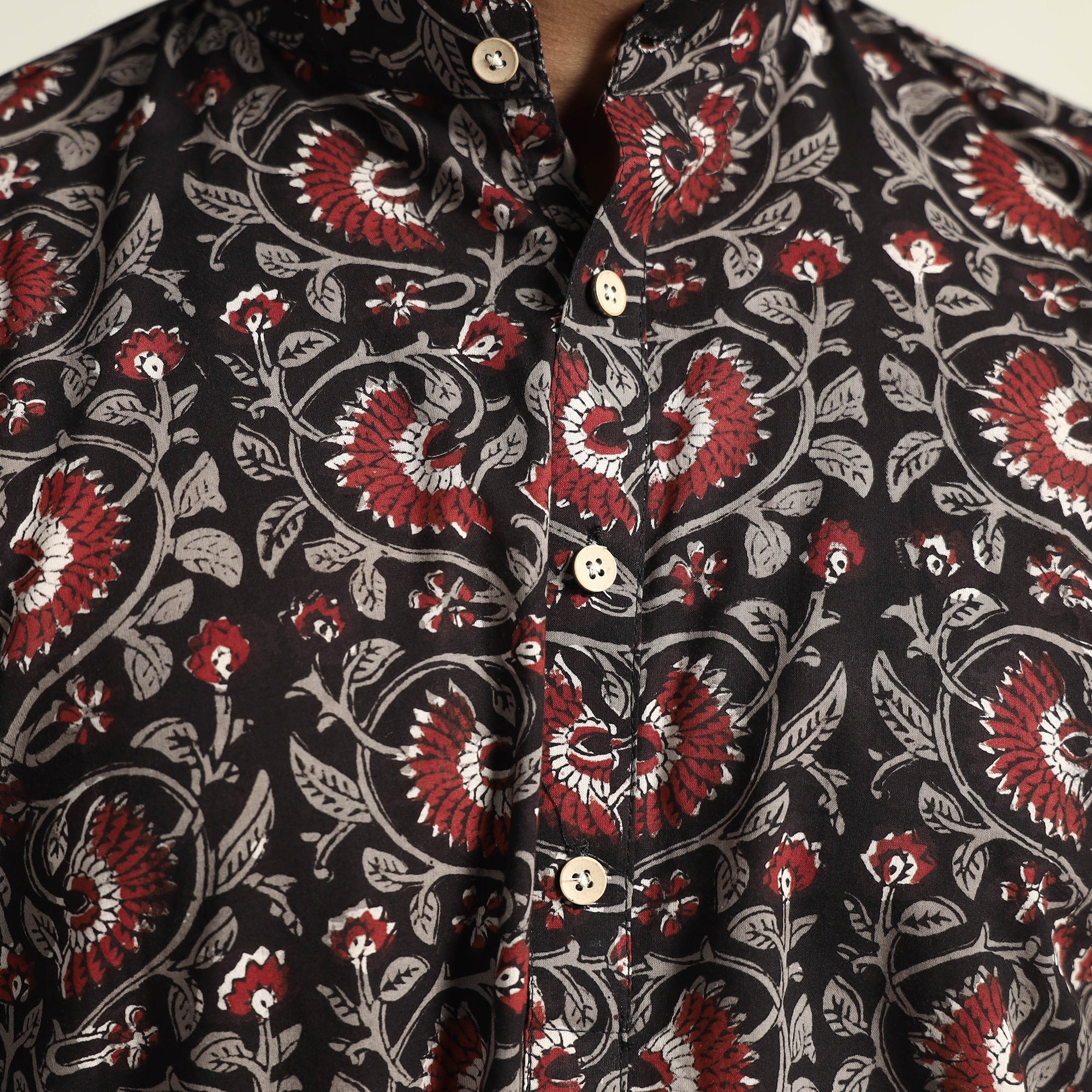 | Material | Bagru block printed cotton men's short kurta with one chest pocket, makes you comfortable with ease all day long. It's made from cotton fabric and features full sleeves, a front button placket. This casual kurta is perfect for your daily outing and for a special occasion. Made using natural dyes through traditional mud resist process by using hand carved wooden block practiced in Bagru, Rajasthan. |