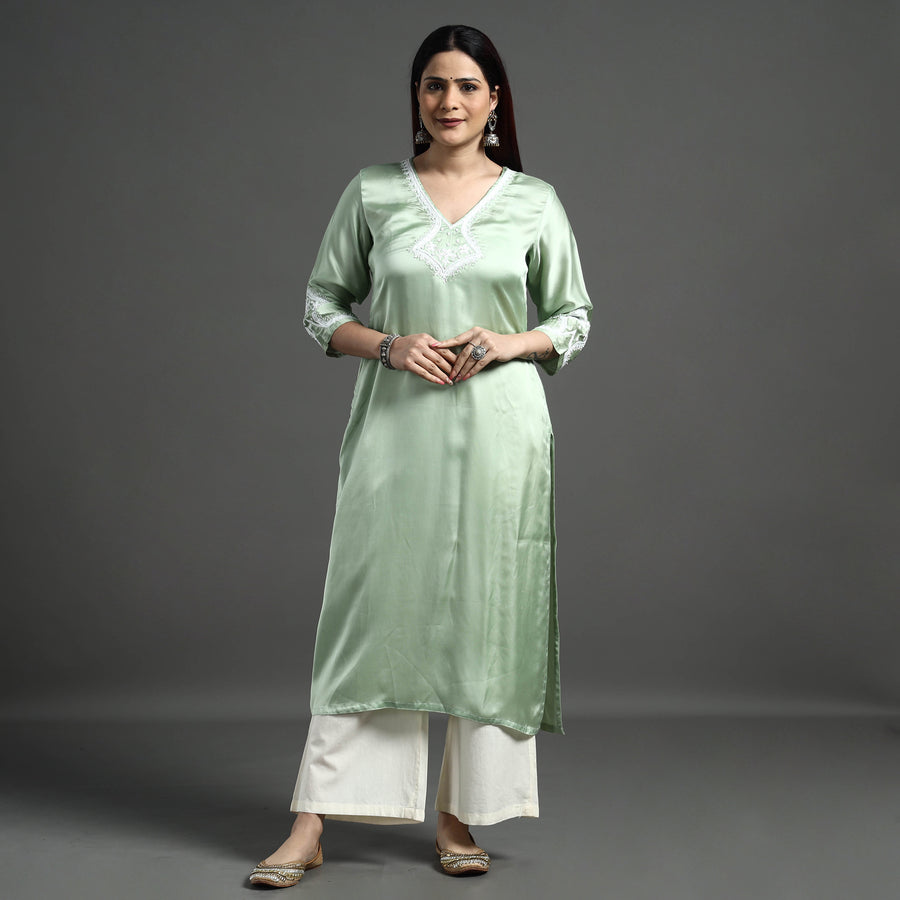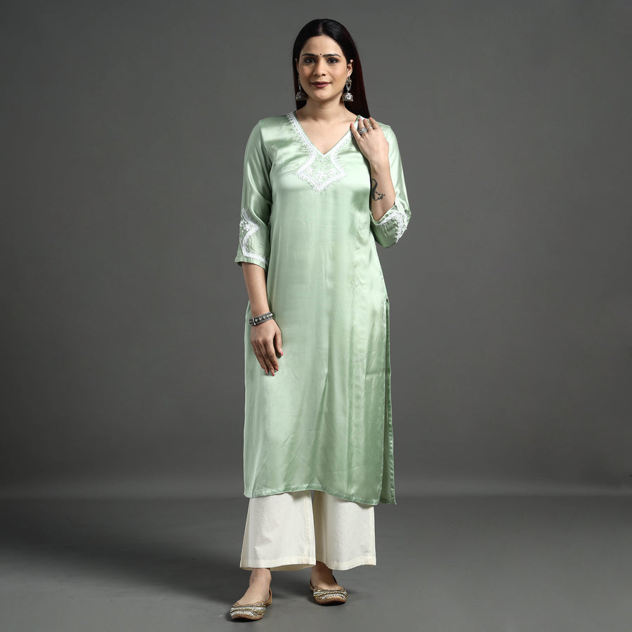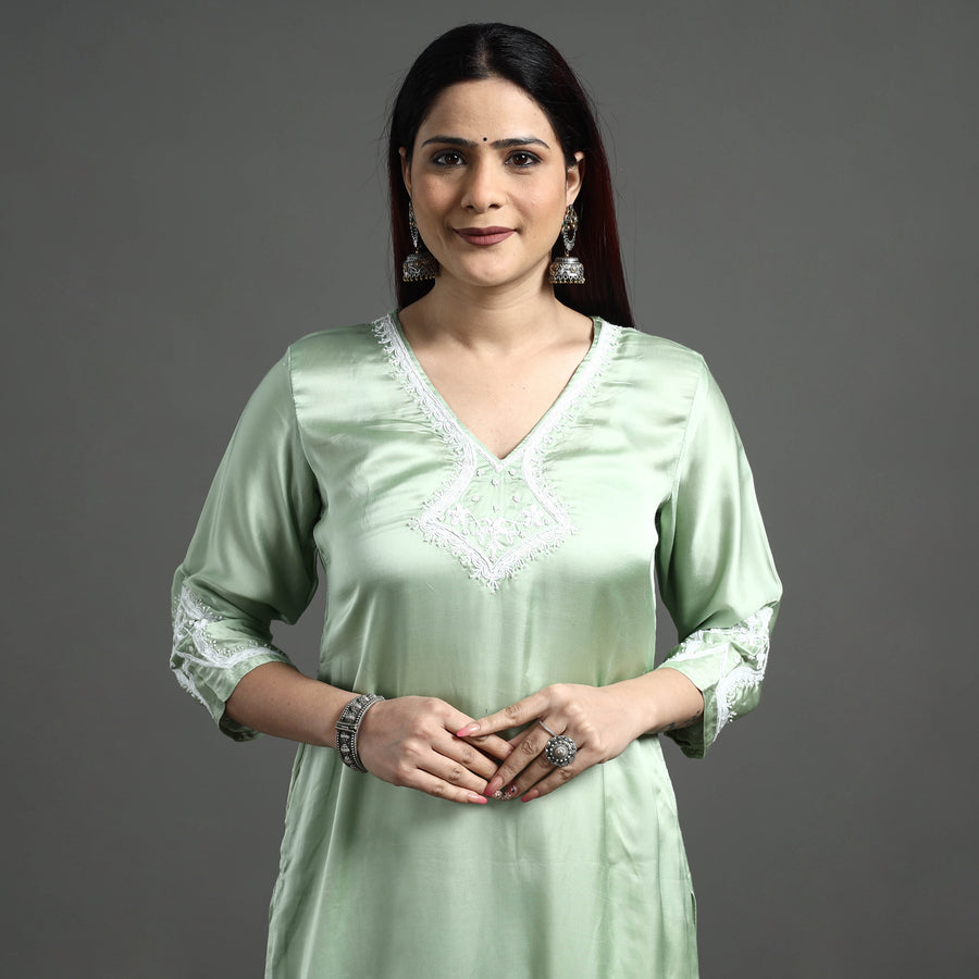 Look and feel beautiful in this uniquely designed palin modal silk hand embroidered long kurta with one side pocket. This modal silk kurta makes you comfortable with ease all day long. This kurta is perfect for your daily outing and for a special occasion. Modal silk is a soft, shiny and highly lustrous fabric, achieved through interlacing modal fibers and silk yarns. it has opulence of silk and the comfort of cotton modal is a fine and soft textured weave.