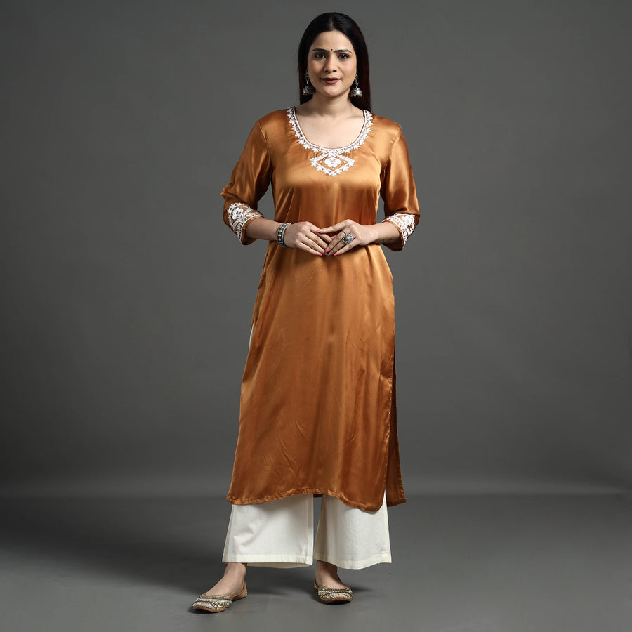 Look and feel beautiful in this uniquely designed palin modal silk hand embroidered long kurta with one side pocket. This modal silk kurta makes you comfortable with ease all day long. This kurta is perfect for your daily outing and for a special occasion. Modal silk is a soft, shiny and highly lustrous fabric, achieved through interlacing modal fibers and silk yarns. it has opulence of silk and the comfort of cotton modal is a fine and soft textured weave.