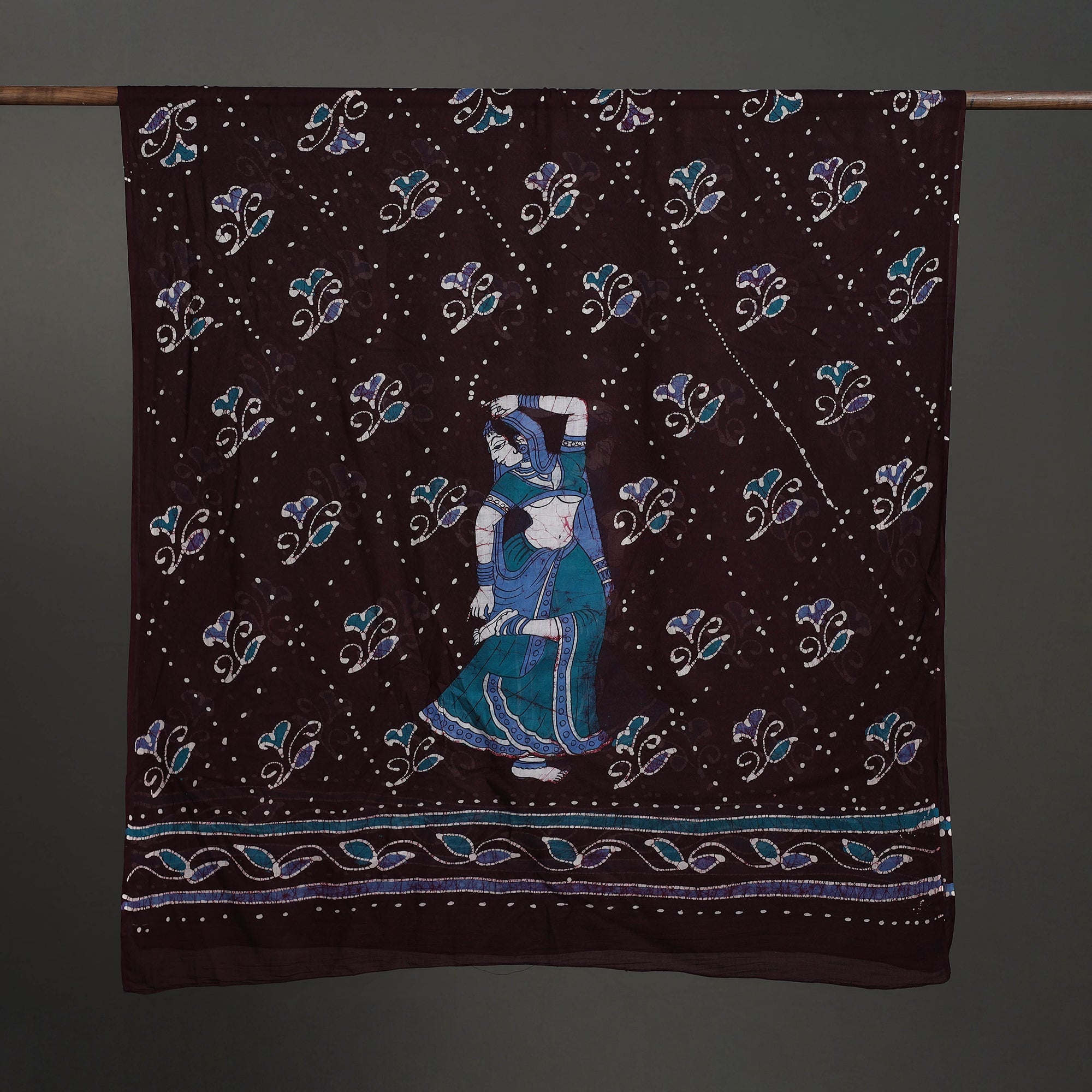 Batik is a very famous technique of wax-resist dyeing applied to whole cloth. The traditional designs and motifs in Indian batik are exceptional. It is a type of resist printing process wherein wax is applied to the fabric in specific areas.