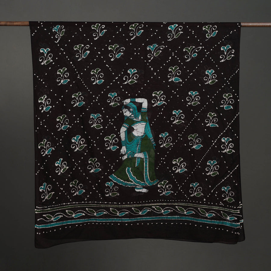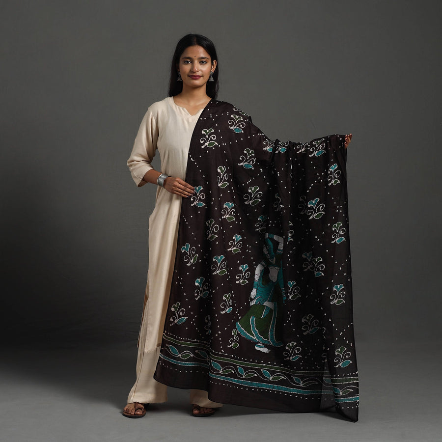 Fine quality hand batik printed brown cottondupatta from Ujjain, Madhya Pradesh.Batik is a technique of wax-resist dyeing applied to whole cloth, or cloth made using this technique. The traditional designs and motifs in Indian batik are often passed down from one generation to another.