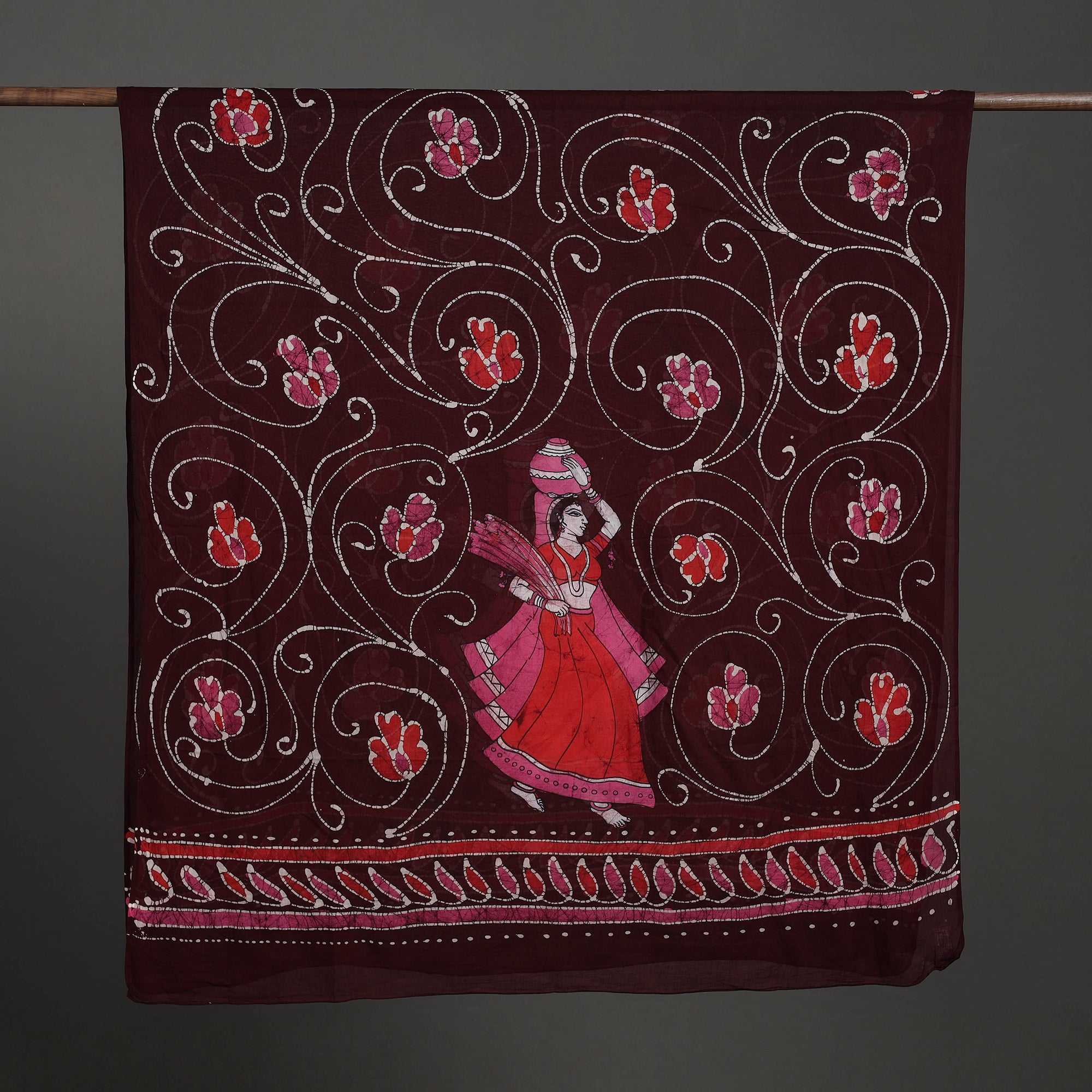 Fine quality maroon hand batik printed cottondupatta from Ujjain, Madhya Pradesh.Batik is a technique of wax-resist dyeing applied to whole cloth, or cloth made using this technique. The traditional designs and motifs in Indian batik are often passed down from one generation to another.