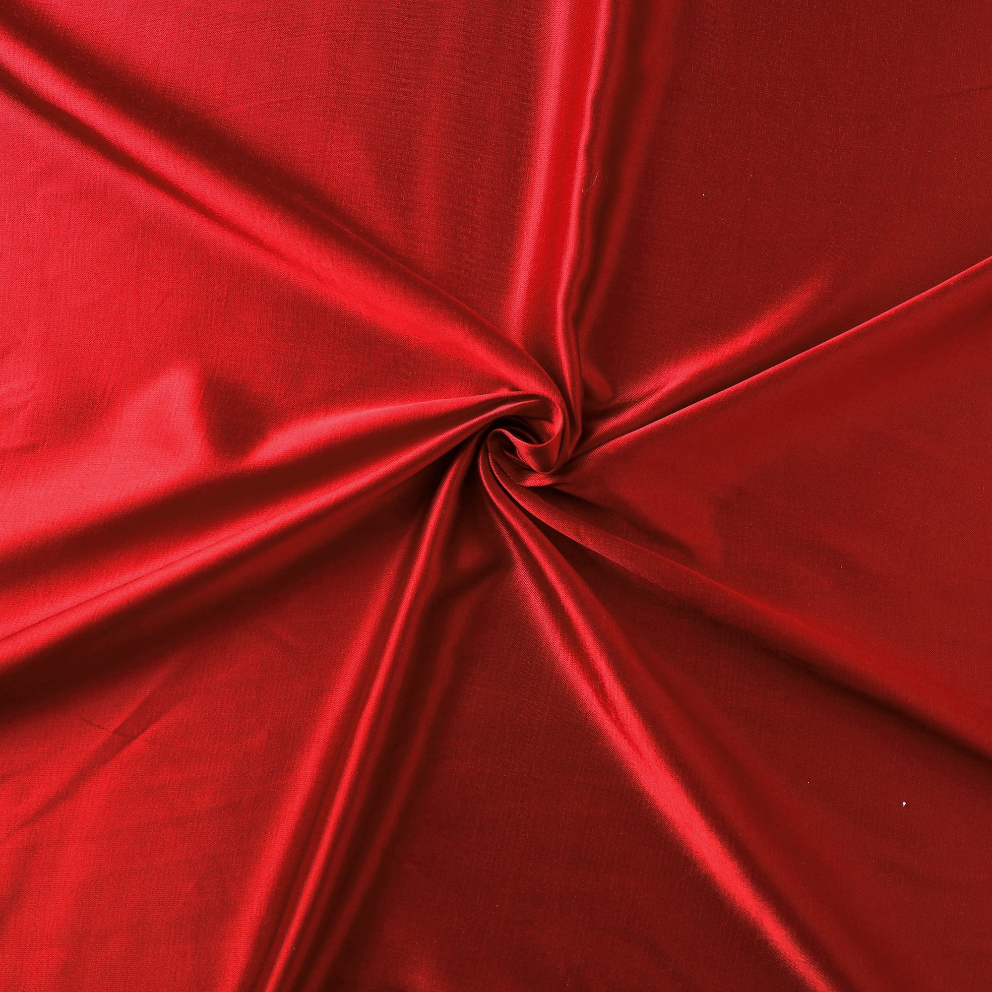Fine quality red plain dyed pure mashru silk fabric from Kutch. This exquisite fabric is made from a blend of mashru fibers and silk yarns. It boasts a soft, shiny, and highly lustrous texture. Embrace the best of both worlds with mashru silk's opulence and cotton-like comfort. The soft and delicately textured weave ensures a pleasant feel against the skin, making it perfect for long-lasting wear and ultimate comfort. Ideal for creating luxurious garments, elegant dresses, sarees, and traditional outfits. Its versatility extends to home decor items like cushion covers and drapes, adding a touch of opulence to any setting.