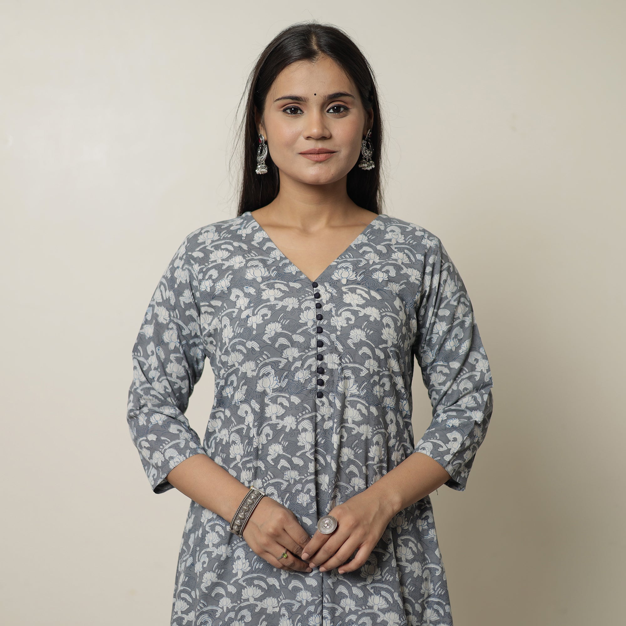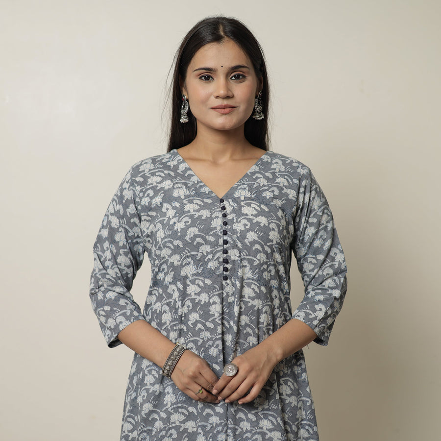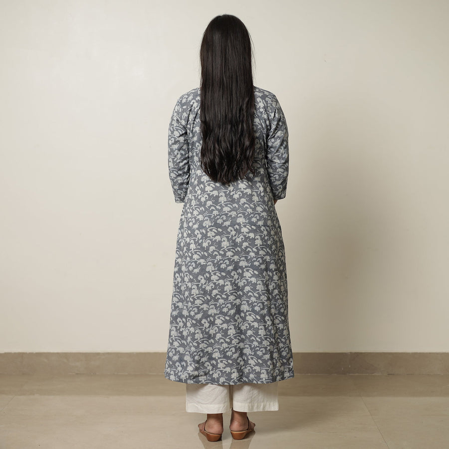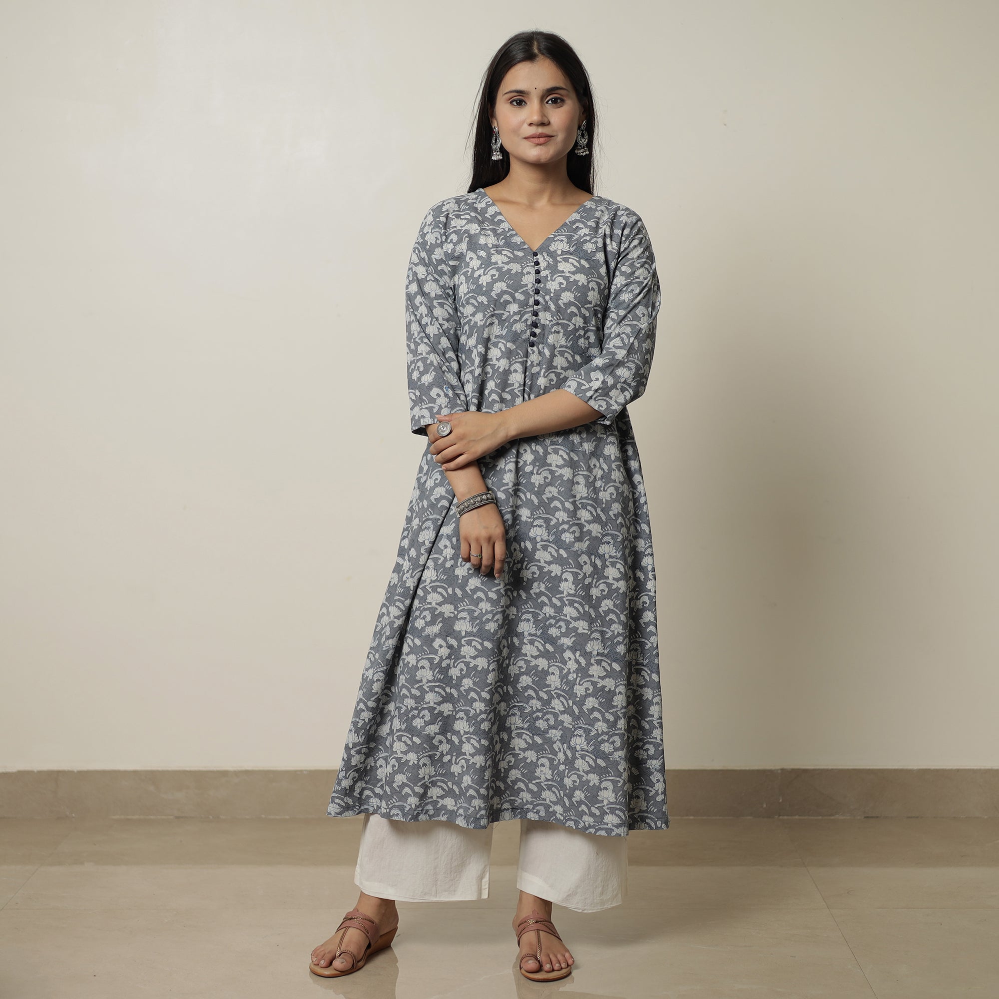 This uniquely designed akola hand block printed cotton long kurta is made using naturally dyed cotton fabric through the traditional mud resist process of hand block printing practised by the master artisans in Akola village of Rajasthan. The kurta also features a convenient one-side pocket, perfect for carrying small essentials. This cotton kurta makes you comfortable all day long. This kurta is perfect for your daily outing and for a special occasion.