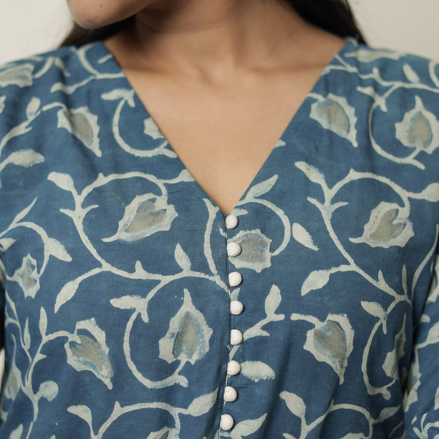 This uniquely designed akola hand block printed cotton long kurta is made using naturally dyed cotton fabric through the traditional mud resist process of hand block printing practised by the master artisans in Akola village of Rajasthan. The kurta also features a convenient one-side pocket, perfect for carrying small essentials. This cotton kurta makes you comfortable all day long. This kurta is perfect for your daily outing and for a special occasion.