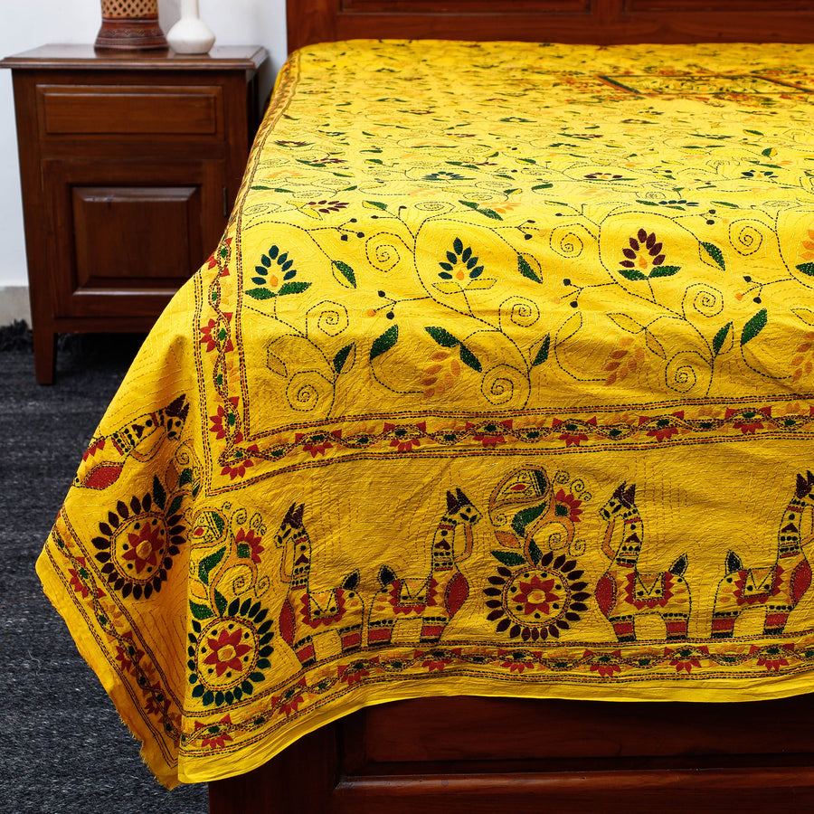 Fine quality bengal kantha embroidered single bed cover, designed with contemporary patterns & has been hand embroidered using West Bengal's traditional craft technique of Kantha.