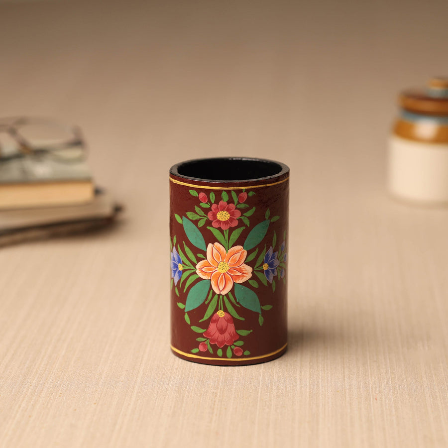 This lovely pen stand has been hand painted by Kashmiri artists drawing inspiration from their beautiful legacy of art. The Papier-Mache art form originally from Persia, was initiated in Kashmir with the art of paper making and writing in the 15th century, during the reign of Badshah Zain-ul-Abedin in Kashmir.