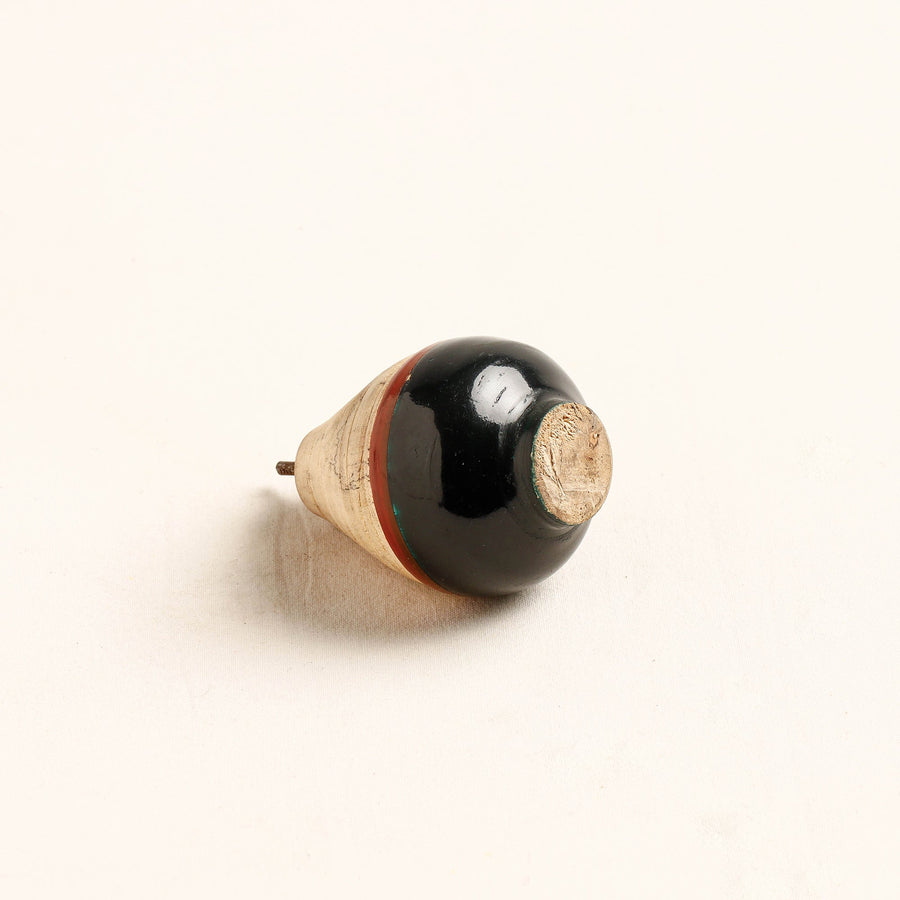 This handcrafted wooden spinning top - lattu is made of babool wood with lacquered colours. This lattu meticulously handcrafted by skilled artisans from the Vadha community in villages like Nirona and Jura. They begin by selecting babool wood, which is known for its durability and strength. Layers of coloured lacquer are applied to the wood, and intricate designs and effects are chiselled to create a stunning visual appeal.