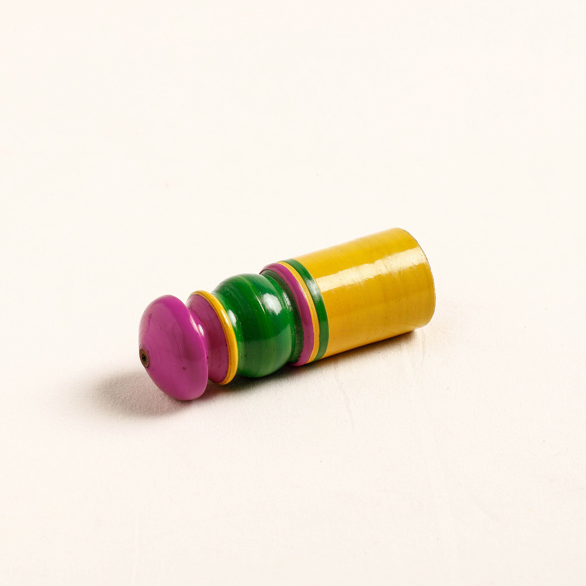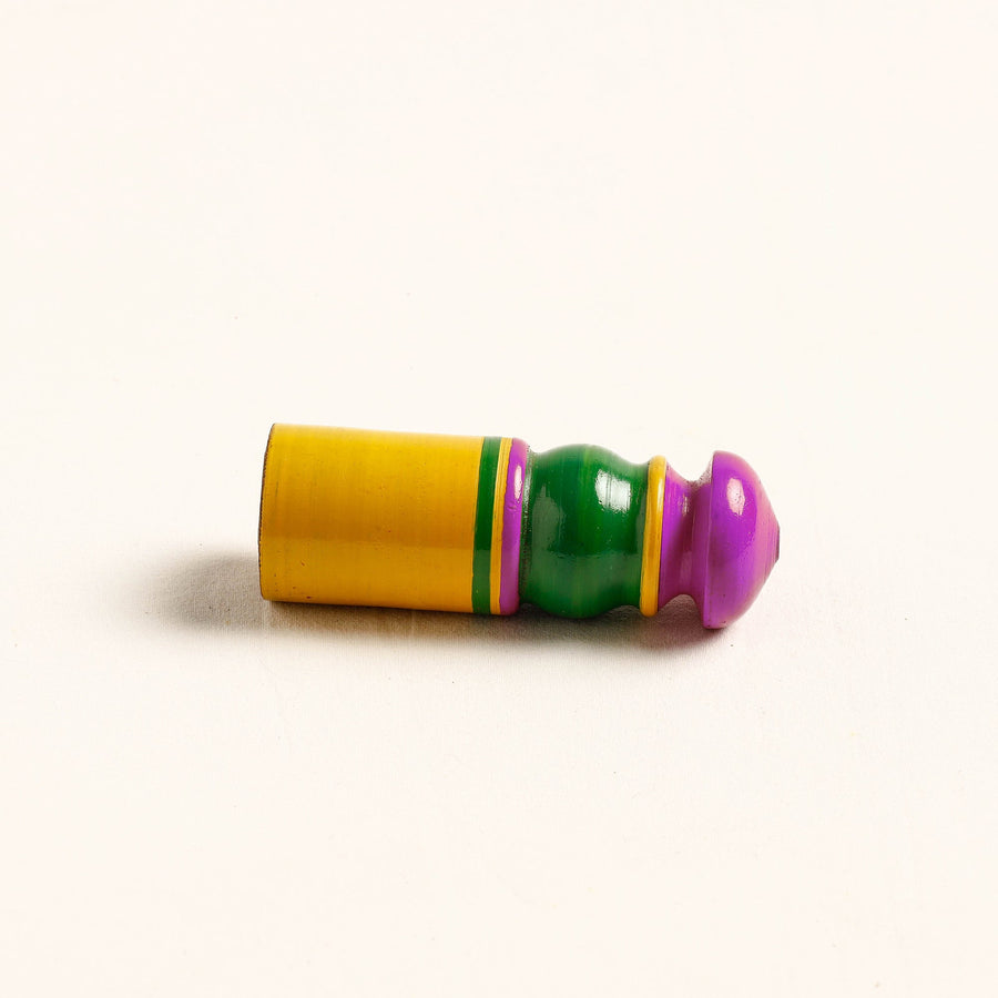 This handcrafted wooden wall hanger is made of babool wood with lacquered colours. This wall hanger meticulously handcrafted by skilled artisans from the Vadha community in villages like Nirona and Jura. They begin by selecting babool wood, which is known for its durability and strength. Layers of coloured lacquer are applied to the wood, and intricate designs and effects are chiselled to create a stunning visual appeal.