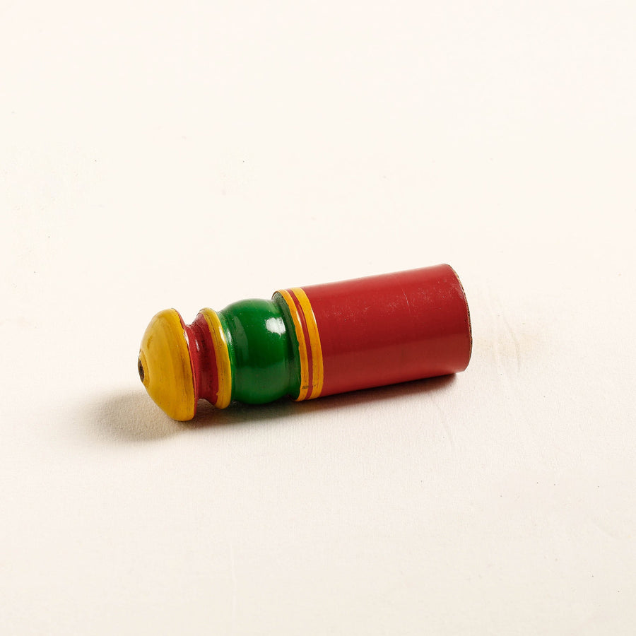 This handcrafted wooden wall hanger is made of babool wood with lacquered colours. This wall hanger meticulously handcrafted by skilled artisans from the Vadha community in villages like Nirona and Jura. They begin by selecting babool wood, which is known for its durability and strength. Layers of coloured lacquer are applied to the wood, and intricate designs and effects are chiselled to create a stunning visual appeal.