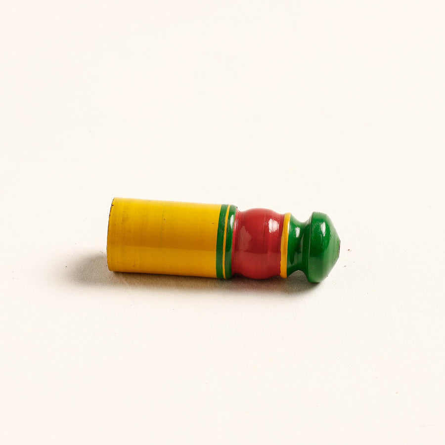 This handcrafted wooden wall hanger is made of babool wood with lacquered colours. This wall hanger meticulously handcrafted by skilled artisans from the Vadha community in villages like Nirona and Jura. They begin by selecting babool wood, which is known for its durability and strength. Layers of coloured lacquer are applied to the wood, and intricate designs and effects are chiselled to create a stunning visual appeal.