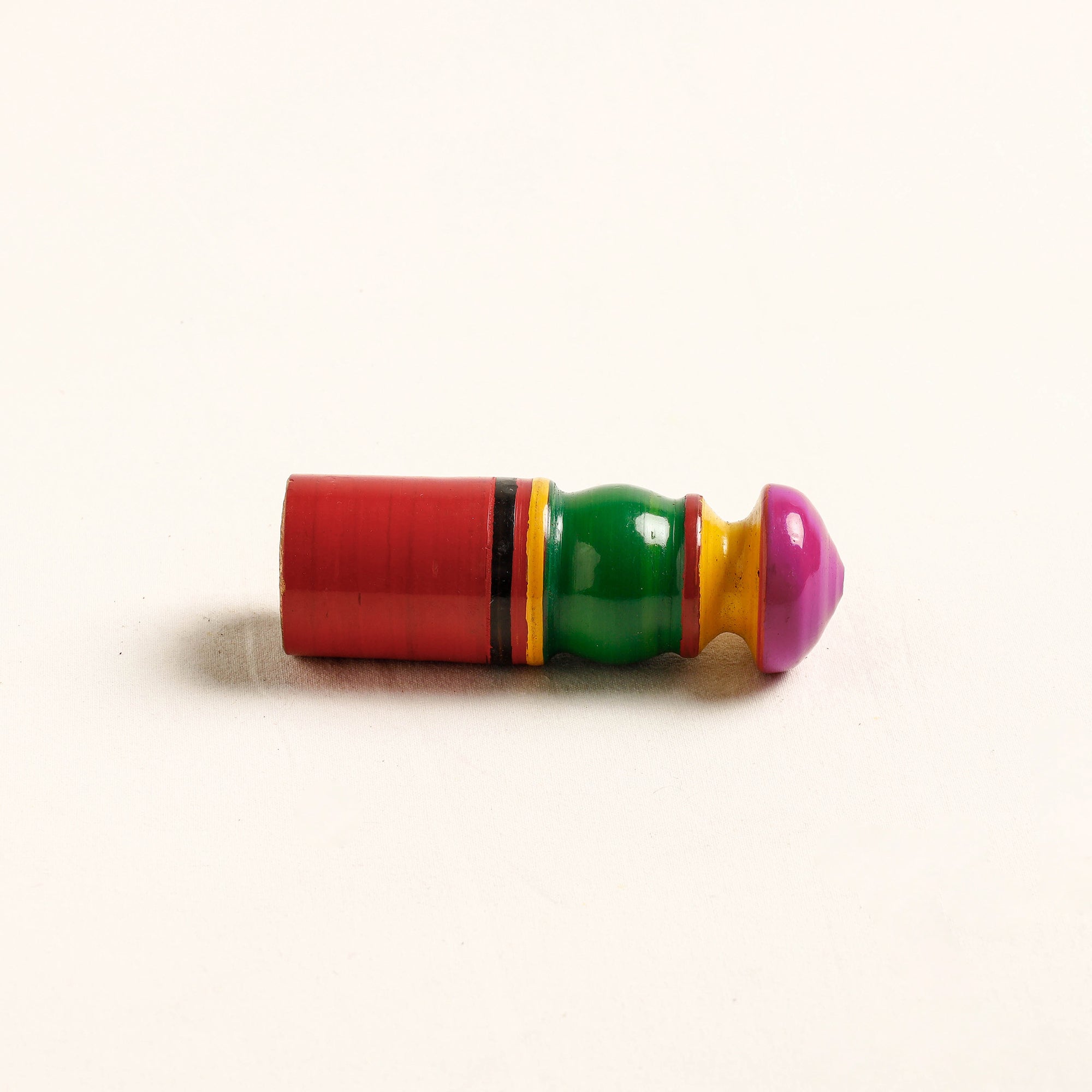 This handcrafted wooden wall hanger is made of babool wood with lacquered colours. This wall hanger meticulously handcrafted by skilled artisans from the Vadha community in villages like Nirona and Jura. They begin by selecting babool wood, which is known for its durability and strength. Layers of coloured lacquer are applied to the wood, and intricate designs and effects are chiselled to create a stunning visual appeal.