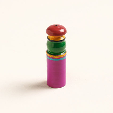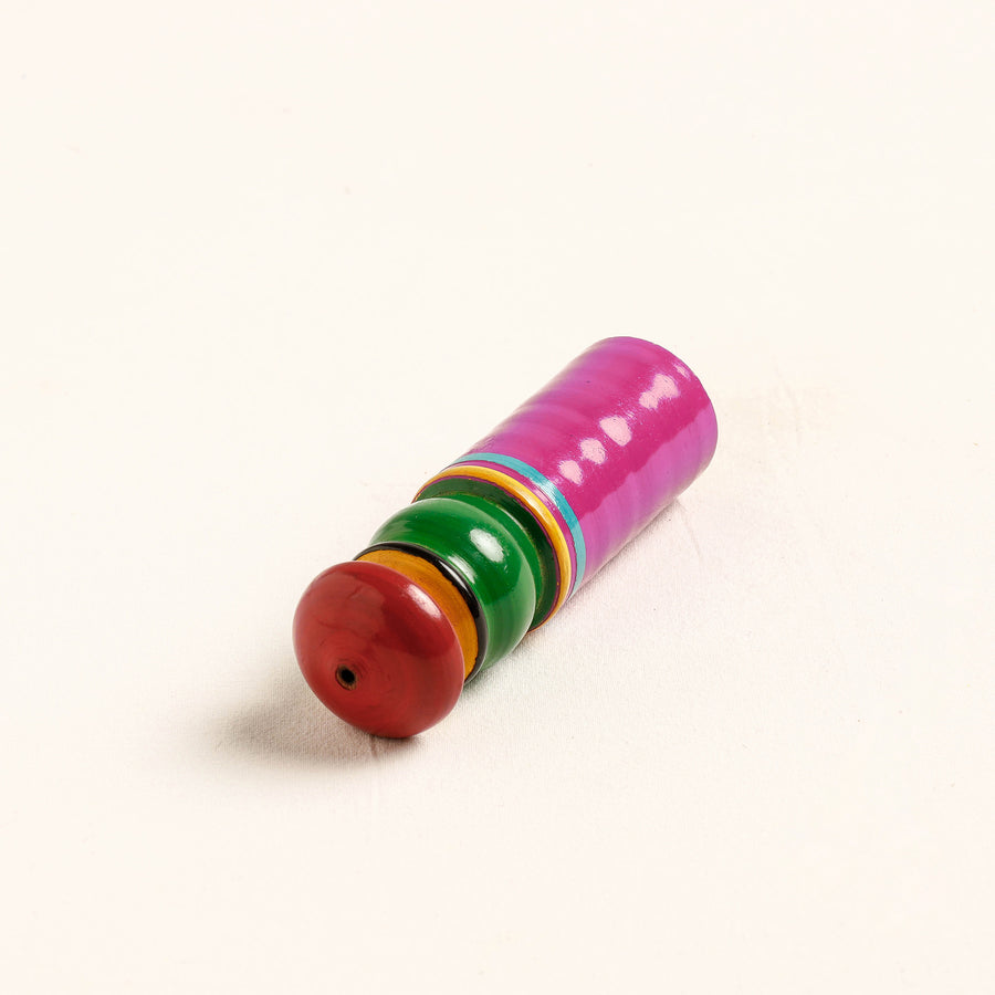 This handcrafted wooden wall hanger is made of babool wood with lacquered colours. This wall hanger meticulously handcrafted by skilled artisans from the Vadha community in villages like Nirona and Jura. They begin by selecting babool wood, which is known for its durability and strength. Layers of coloured lacquer are applied to the wood, and intricate designs and effects are chiselled to create a stunning visual appeal.