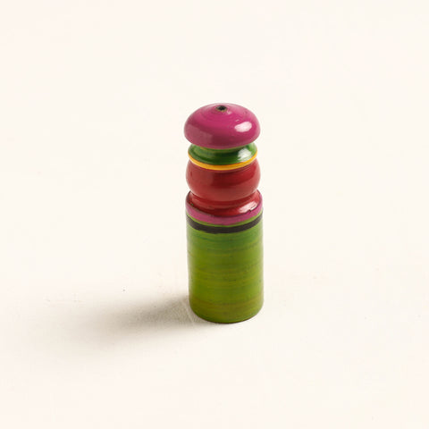 This handcrafted wooden wall hanger is made of babool wood with lacquered colours. This wall hanger meticulously handcrafted by skilled artisans from the Vadha community in villages like Nirona and Jura. They begin by selecting babool wood, which is known for its durability and strength. Layers of coloured lacquer are applied to the wood, and intricate designs and effects are chiselled to create a stunning visual appeal.