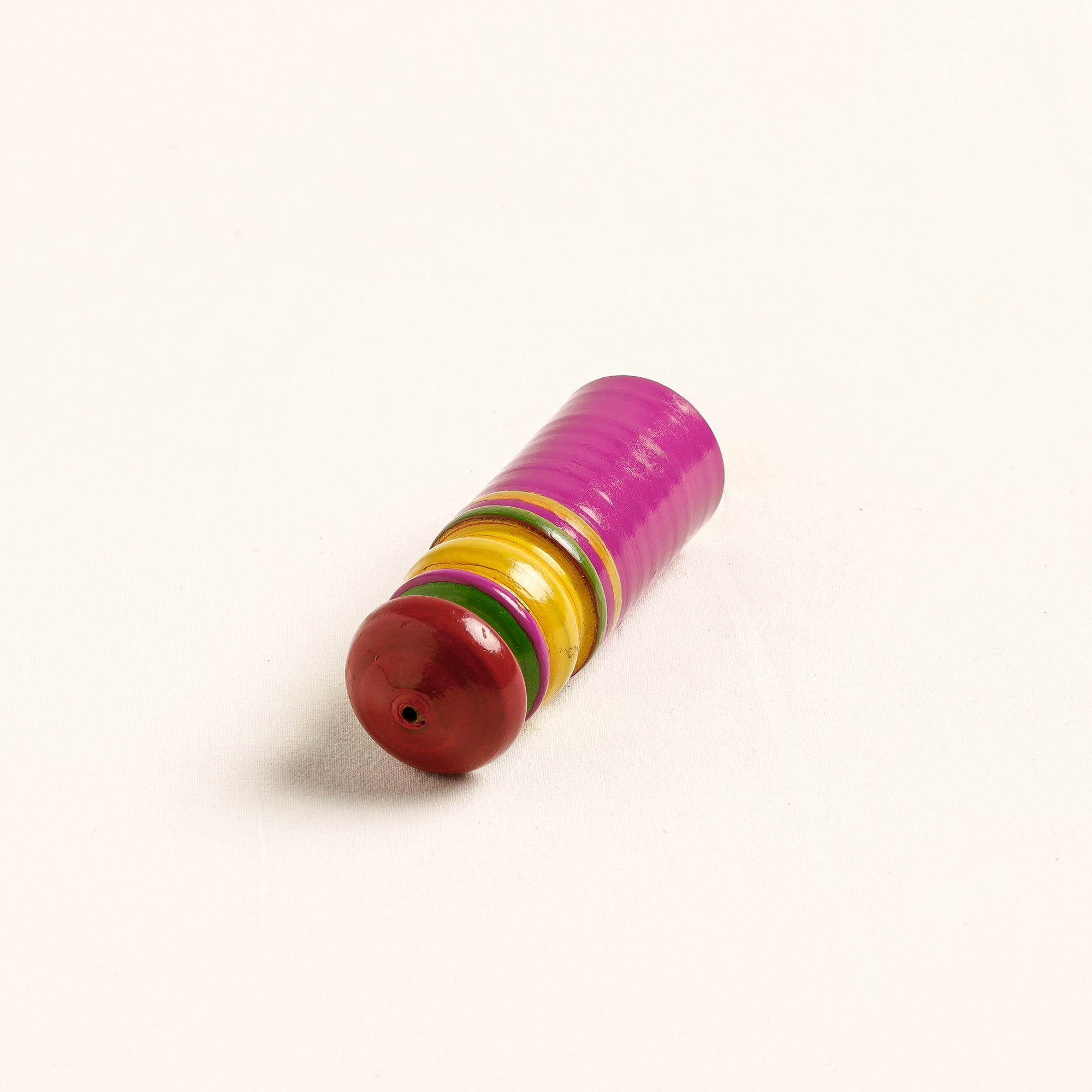 This handcrafted wooden wall hanger is made of babool wood with lacquered colours. This wall hanger meticulously handcrafted by skilled artisans from the Vadha community in villages like Nirona and Jura. They begin by selecting babool wood, which is known for its durability and strength. Layers of coloured lacquer are applied to the wood, and intricate designs and effects are chiselled to create a stunning visual appeal.