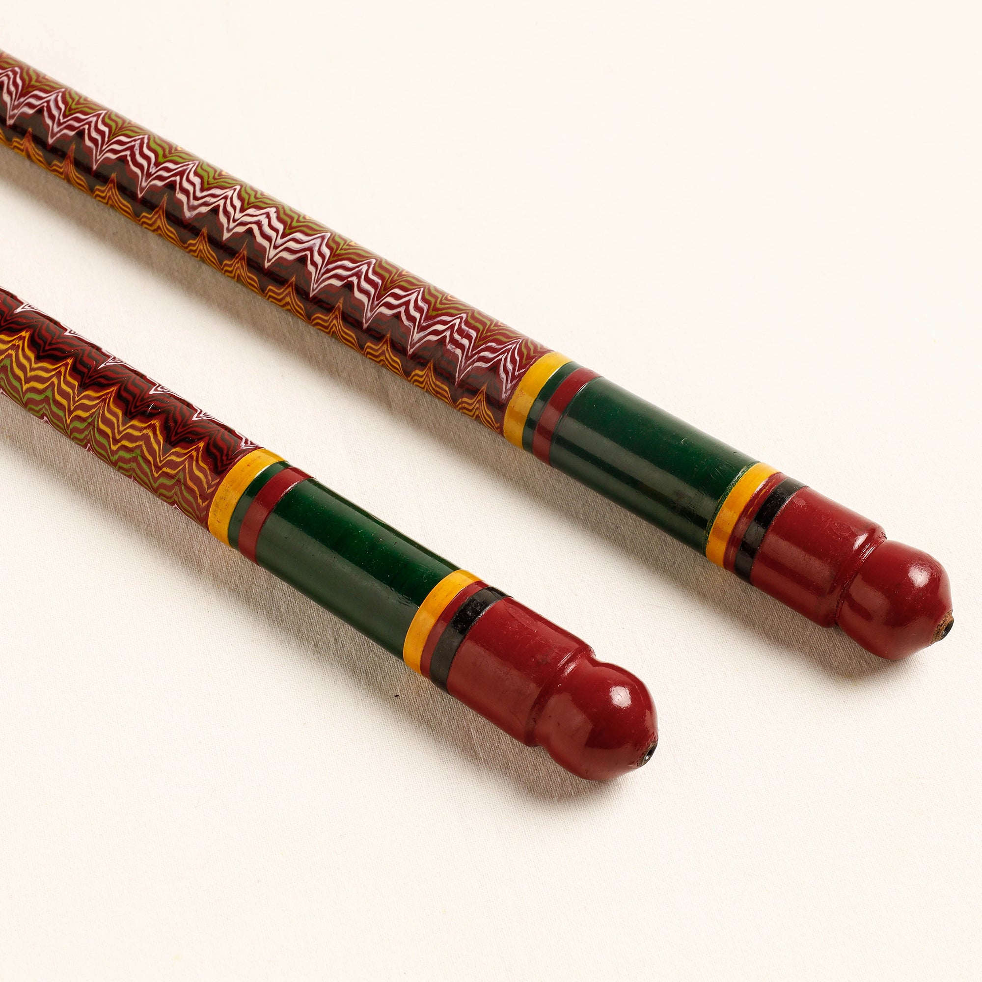Handmade Lacquered Wooden Garba Dandiya Sticks (Set of 2)
