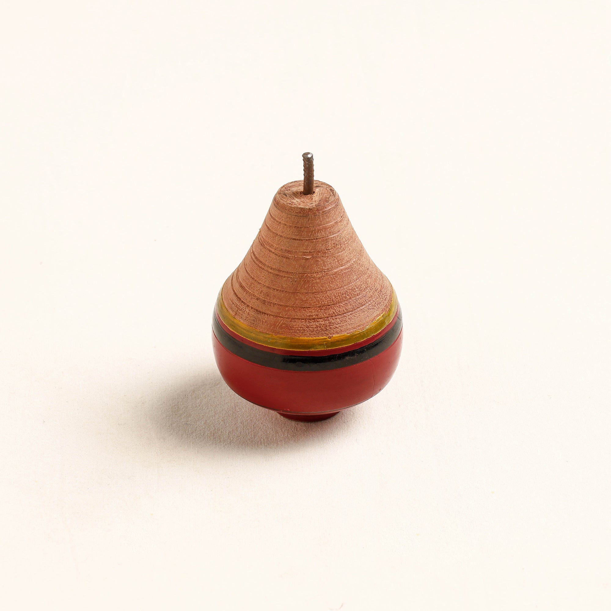 This handcrafted wooden spinning top - lattu is made of babool wood with lacquered colours. This lattu meticulously handcrafted by skilled artisans from the Vadha community in villages like Nirona and Jura. They begin by selecting babool wood, which is known for its durability and strength. Layers of coloured lacquer are applied to the wood, and intricate designs and effects are chiselled to create a stunning visual appeal.