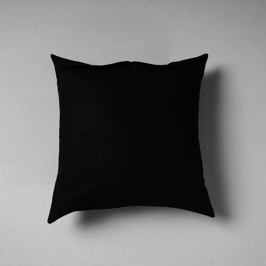 Tribal design hand stitched black pipli applique work cushion cover made from pure cotton fabrics, handcrafted by artisans of Pipili, the hub of traditional art & craft in Odisha. Applique work is a traditional patchwork that has a long history in Odisha. This applique work is normally dependent on some bright colours that is red, white, black, yellow, green and blue etc. The artisans skillfully stitch the traditional motifs like animals, birds and flowers on fabric. Modern applique art form mainly inspired by the religious in nature and it is closely connected with religious traditions.