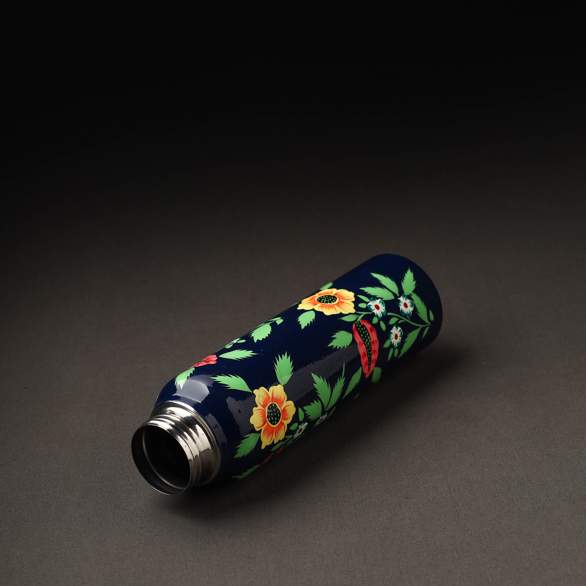 Floral design blue handpainted water bottle with waterproof oil-based paint on very high-quality stainless steel by the artisans of Kashmir. This bottle can also be taken to the gym, yoga class, or office, which will make you the attraction, and you can also gift it to any art lover.