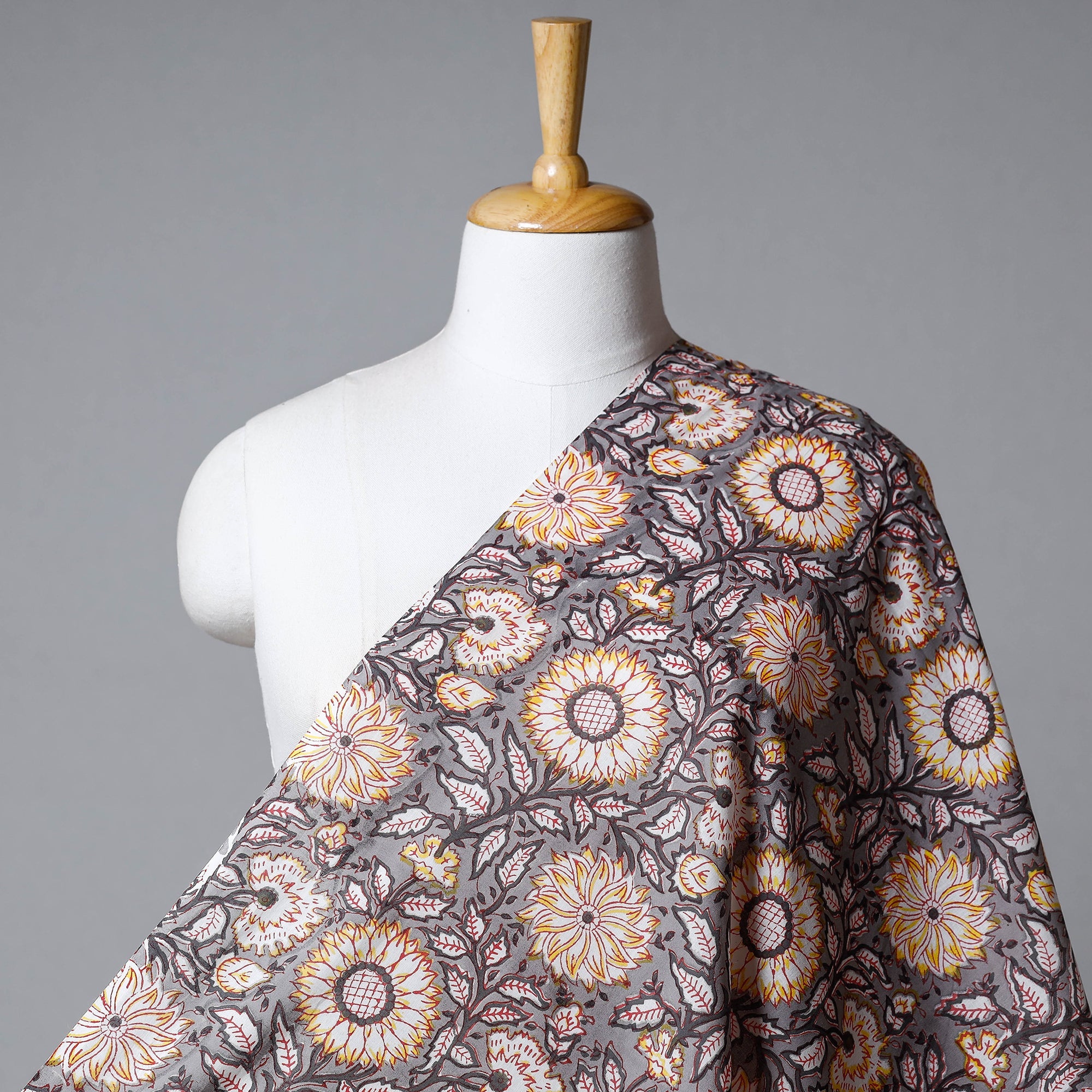 Experience the rich heritage of sunflower pattern sanganeri hand block prints with this fine quality cotton fabric. Originating from Rajasthan, this technique is known for its intricate designs and vibrant colors. This fabric is dyed with bleed-free VAT dyes, ensuring lasting beauty. Perfect for creating unique clothing and home decor pieces.
