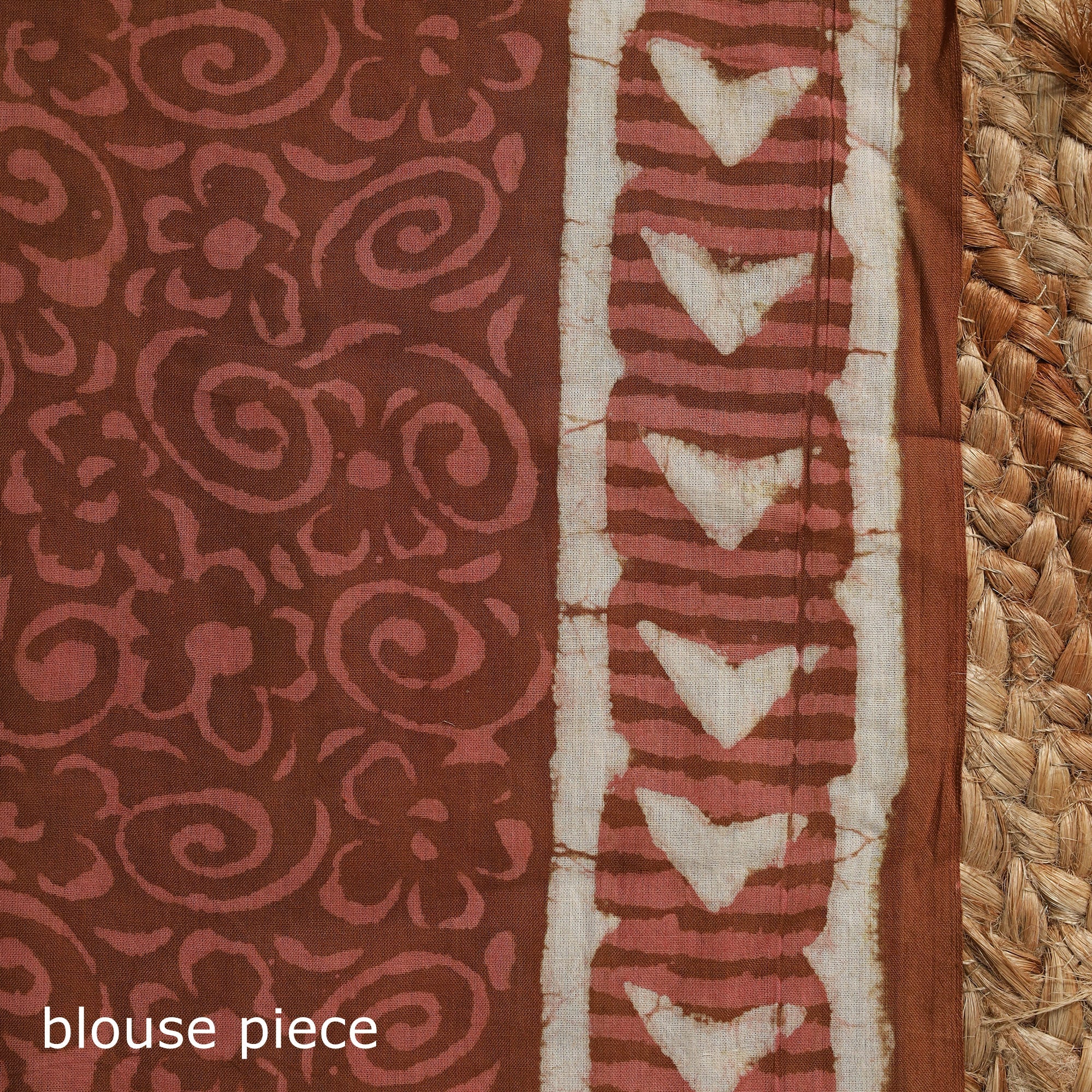 This brown bagru dabu block-printed mul cotton saree showcases the rich heritage of Rajasthan. Made with natural dyes and crafted through the traditional mud resist process, it features intricate designs created using hand-carved wooden blocks, perfect for adding elegance to any occasion.