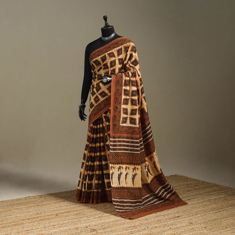 • Orange - mul cotton bagru saree 08 - handcrafted