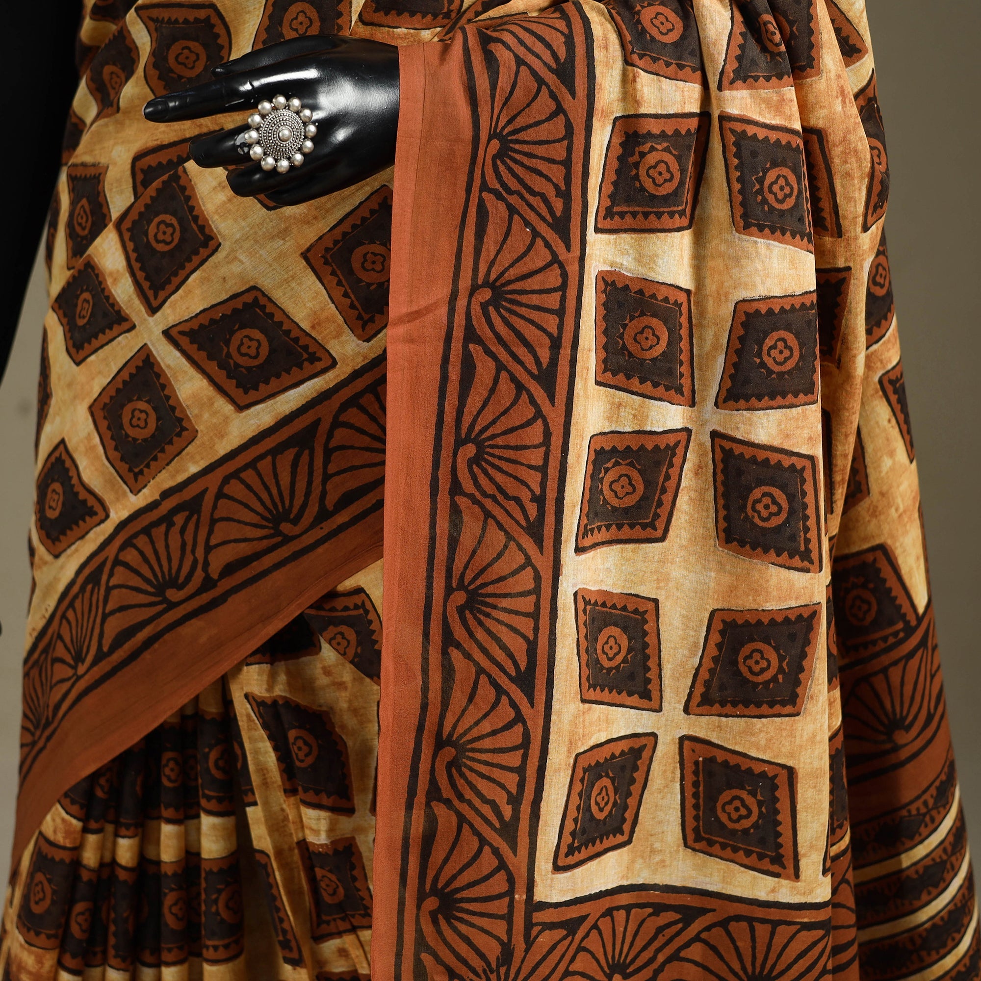 Orange - Mul Cotton Block Print Ajrakh Bagru Saree 08