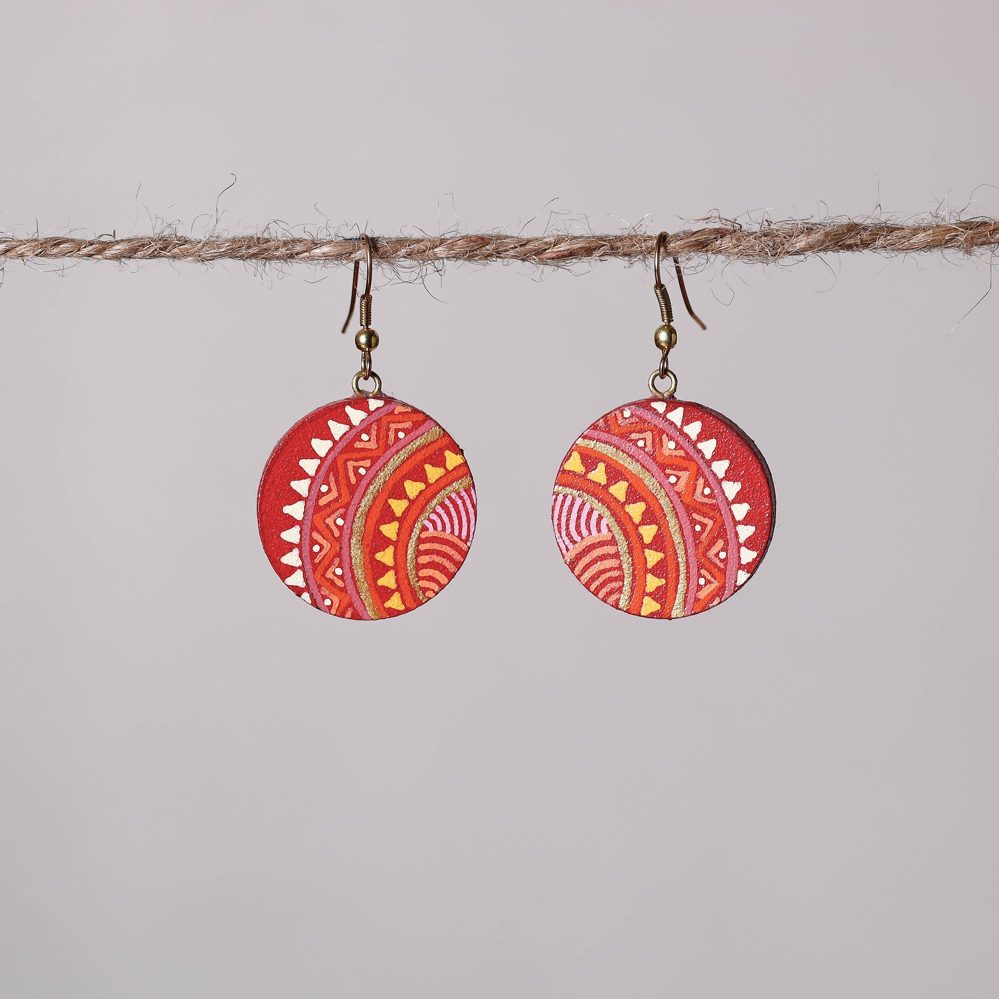 Elevate your style with our exquisite red handpainted miniature painting pine wood (MDF) Earrings, handcrafted by the talented artisans Rajesh & Monali. These earrings are a true testament to their skill and creativity.