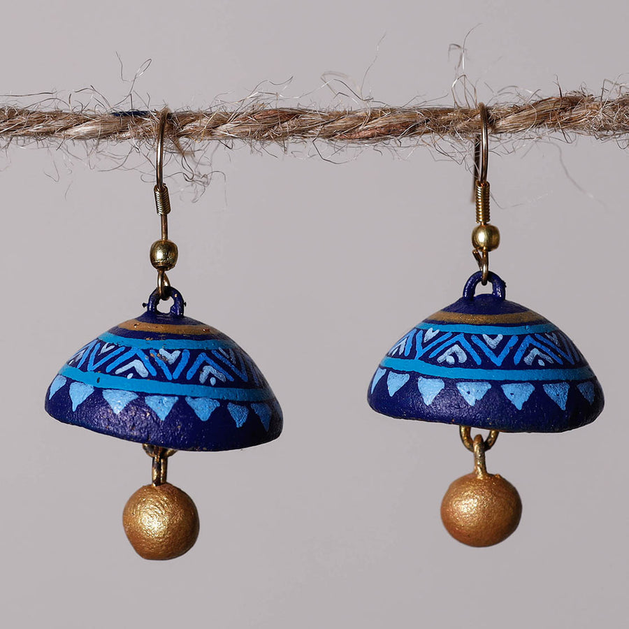Elevate your style with our exquisite blue handpainted miniature painting terracotta jhumki earrings, handcrafted by the talented artisans Rajesh & Monali. These earrings are a true testament to their skill and creativity.