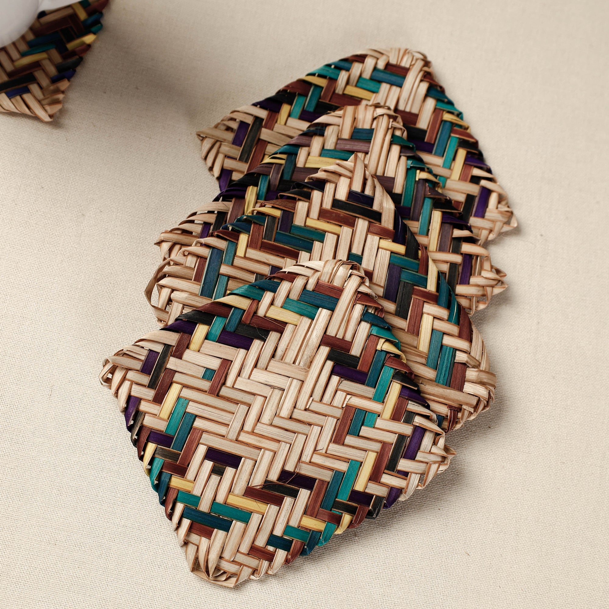 Handwoven water hyacinth reed coasters intricately detailed with unique patterns made from naturally dried water hyacinth reed fiber. Water Hyacinth's products are completely natural and eco-friendly.