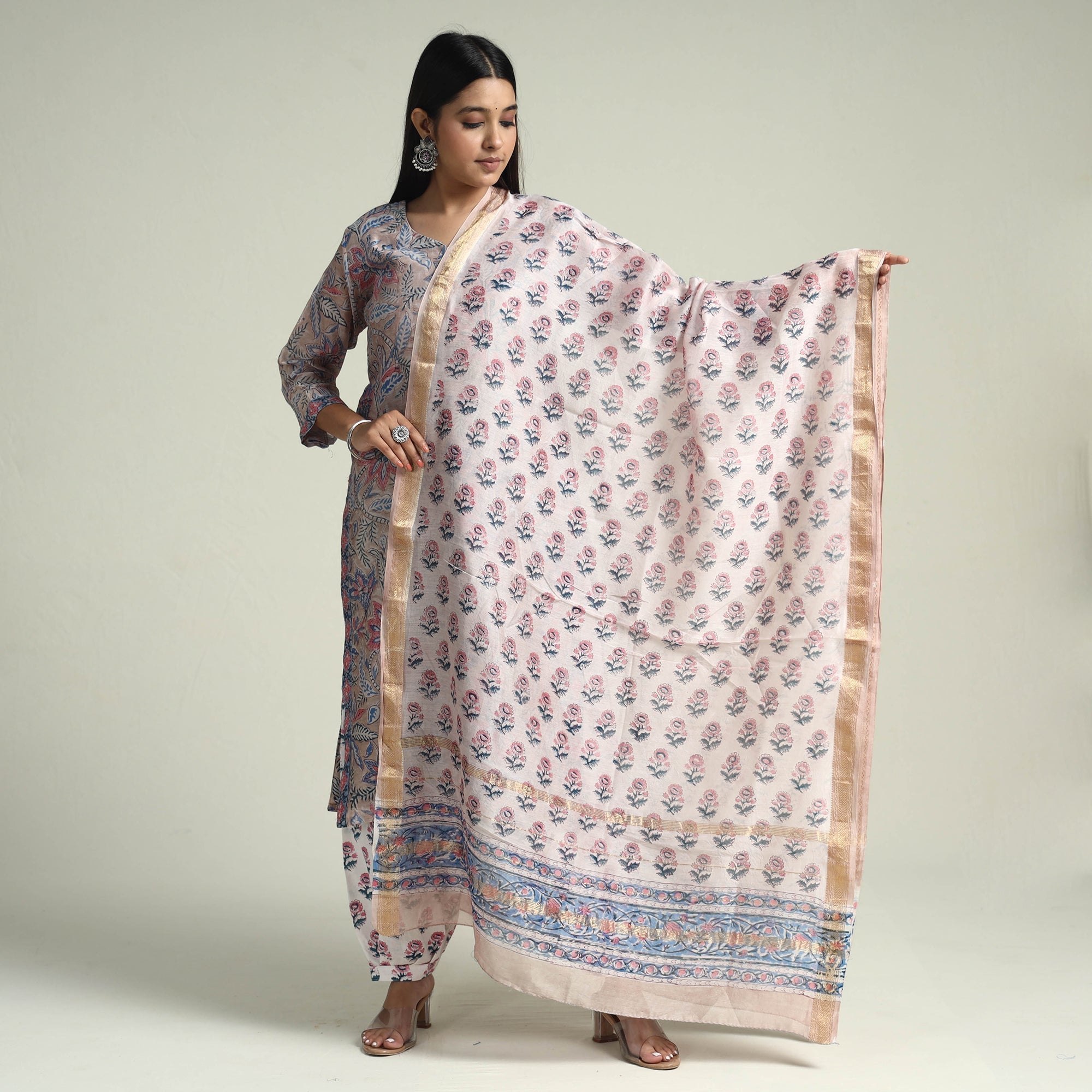 Sanganeri is a hand-block printing method came from Sanganer, a village in the southern part of Jaipur, Rajasthan. This form of textile printing is almost 5 centuries antique and to date holds an outstanding place in the international of weavers and craftsmen.
