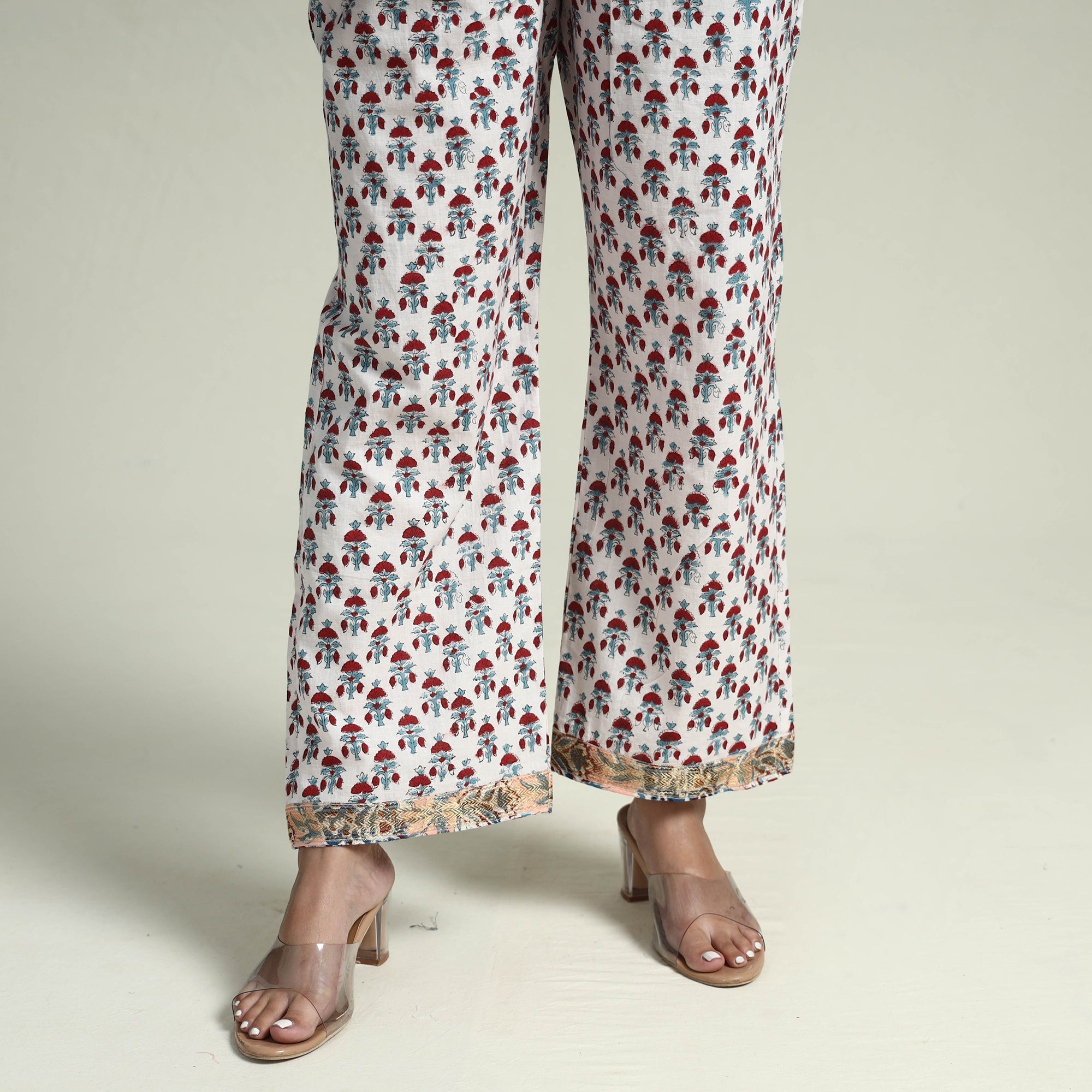 Material Embrace the elegance of handcrafted beauty with our sanganeri hand block printed maheshwari silk long kurta with palazzo & dupatta set. This suit set includes a maheshwari silk kurta, cotton palazzo with maheshwari silk zari border dupatta. The kurta also features a convenient one-side pocket, perfect for carrying small essentials, and the palazzo features an elasticized waist and two side pockets, adding functionality to this palazzo. Perfect for special occasions and celebrations, this elegant suit exudes traditional charm with its hand-block printed motifs.