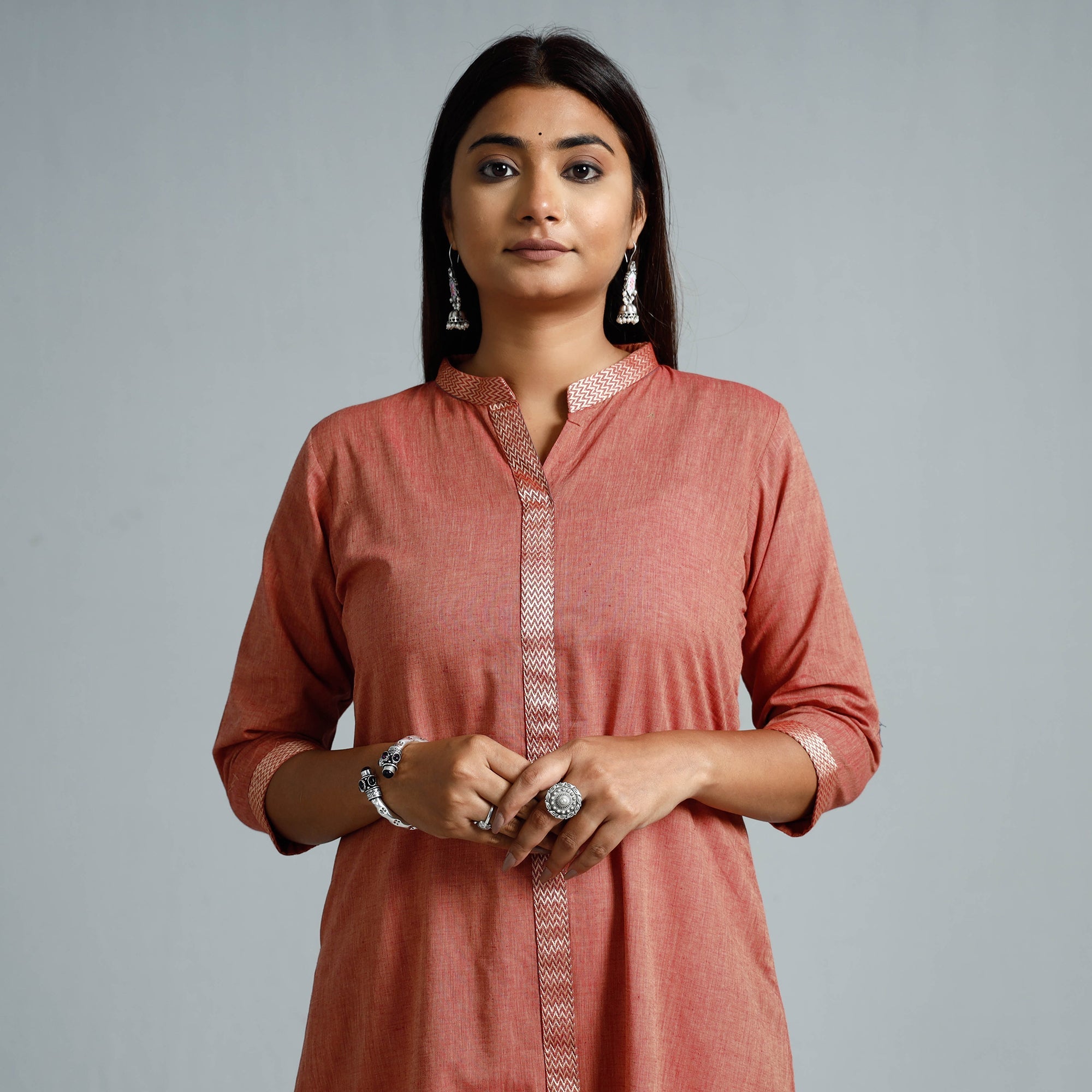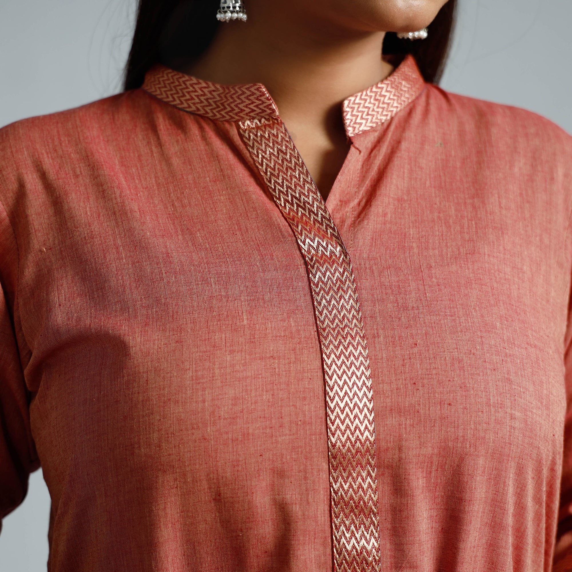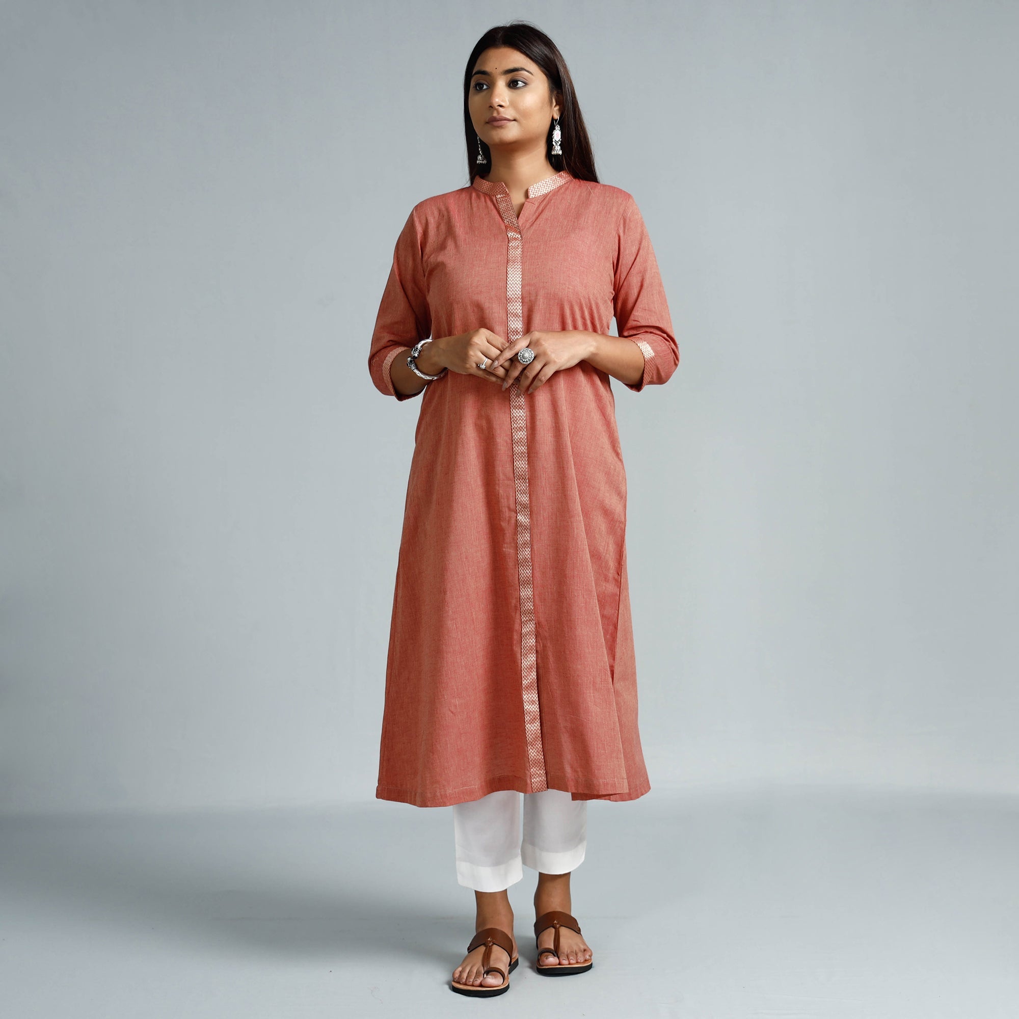 Look and feel beautiful in this uniquely designed dharwad cotton long kurta with one side pocket. This cotton kurta makes you comfortable with ease all day long.