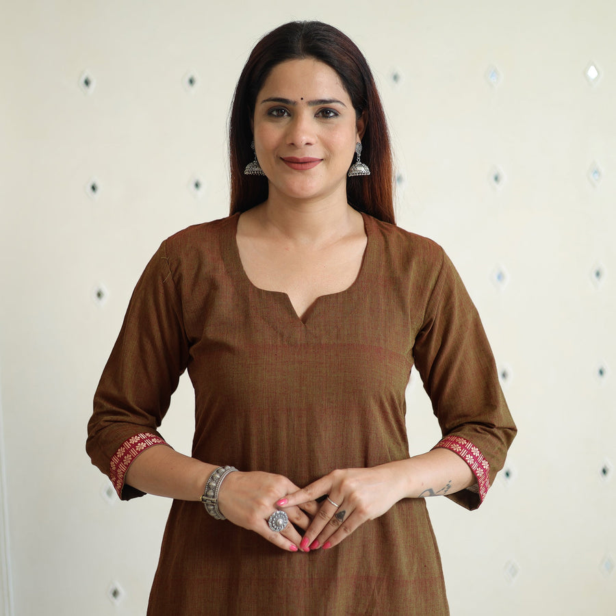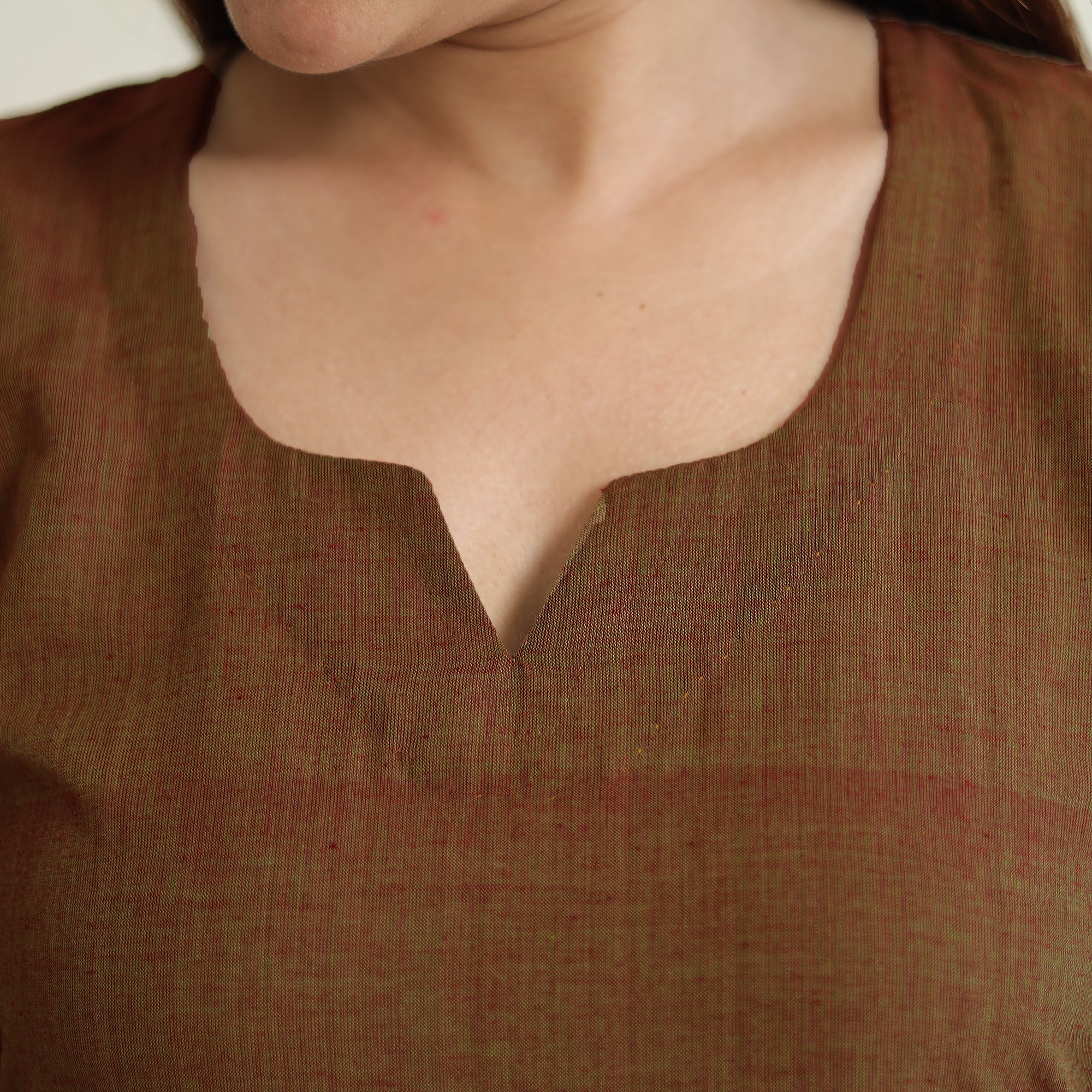 Look and feel beautiful in this uniquely designed dharwad cotton long kurti with one side pocket. This cotton kurti makes you comfortable with ease all day long.
