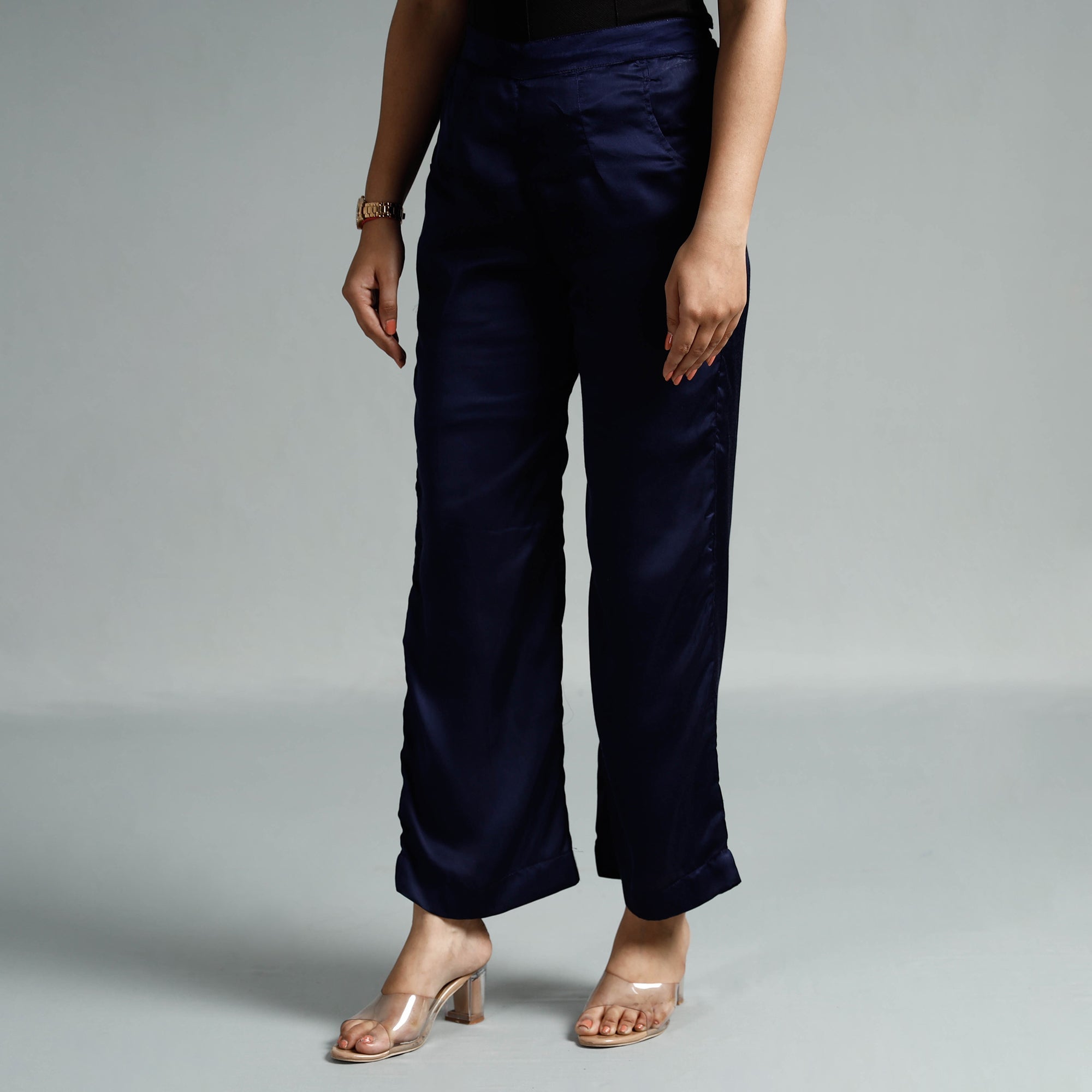 Elevate your style with this plain dyed modal silk elasticated waist pant. The elasticized waist ensures a great fit, while the two side pockets add functionality. This pant makes you feel comfortable and stylish all day long and is perfect for your daily outings and special occasions.