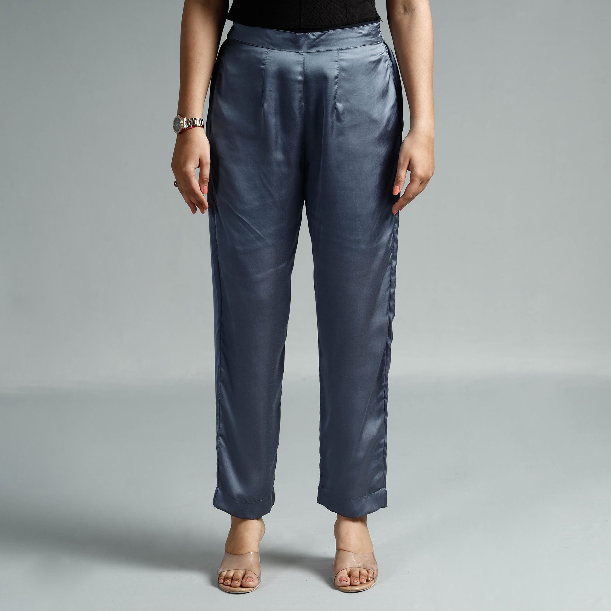 Elevate your style with this plain dyed modal silk elasticated waist pant. The elasticized waist ensures a great fit, while the two side pockets add functionality. This pant makes you feel comfortable and stylish all day long and is perfect for your daily outings and special occasions.